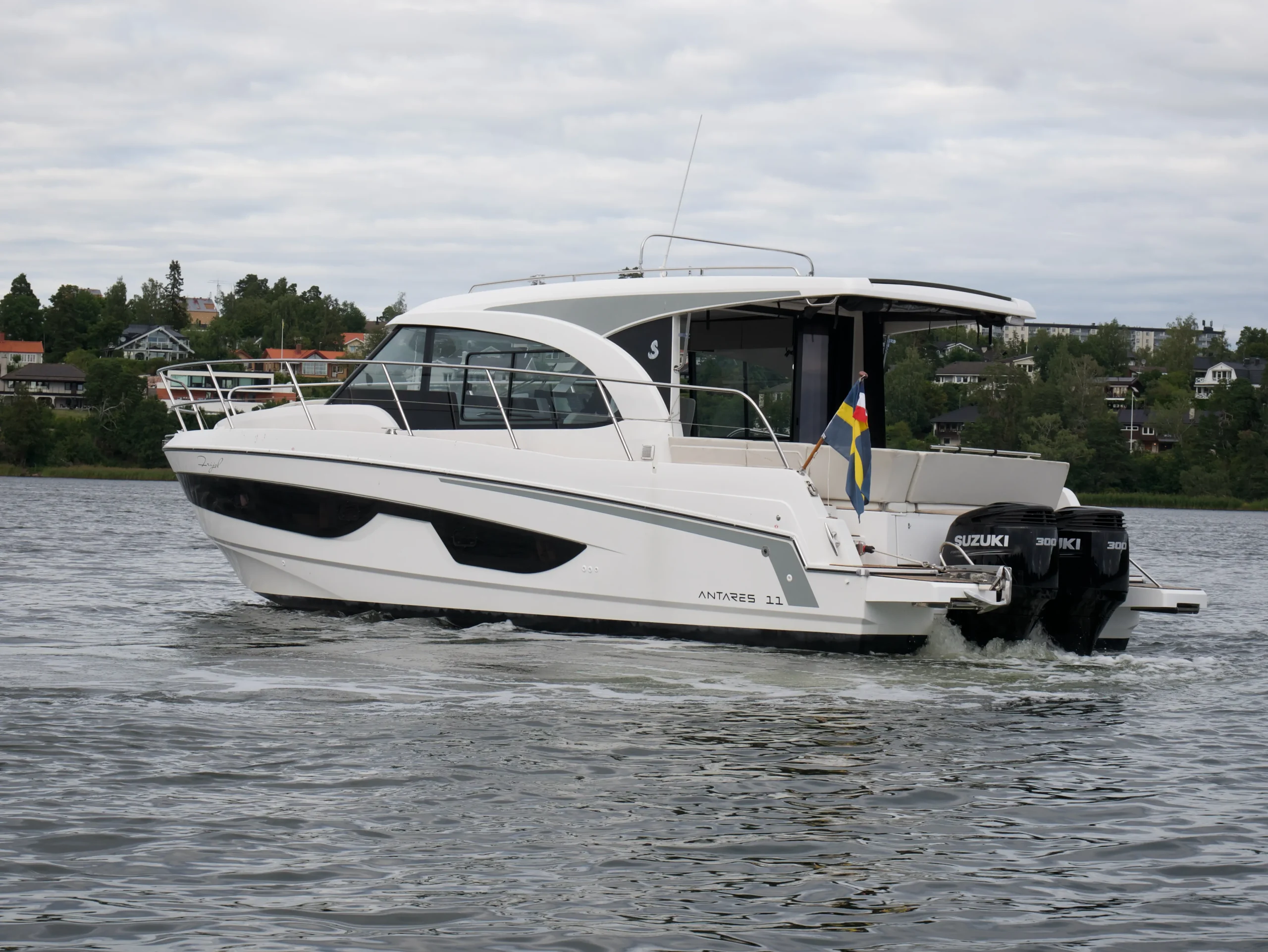 Beneteau Antares 11 passar perfekt för dig som söker en lyxig och bekväm båt med genomtänkt planlösning och hög körglädje. Detta exemplar är utrustat med två kraftfulla Suzuki-motorer om vardera 300 hk, med en total gångtid på 266 timmar. Motorerna har servats regelbundet och styrs smidigt med joystick. Nyservade inför säsongen 2025.