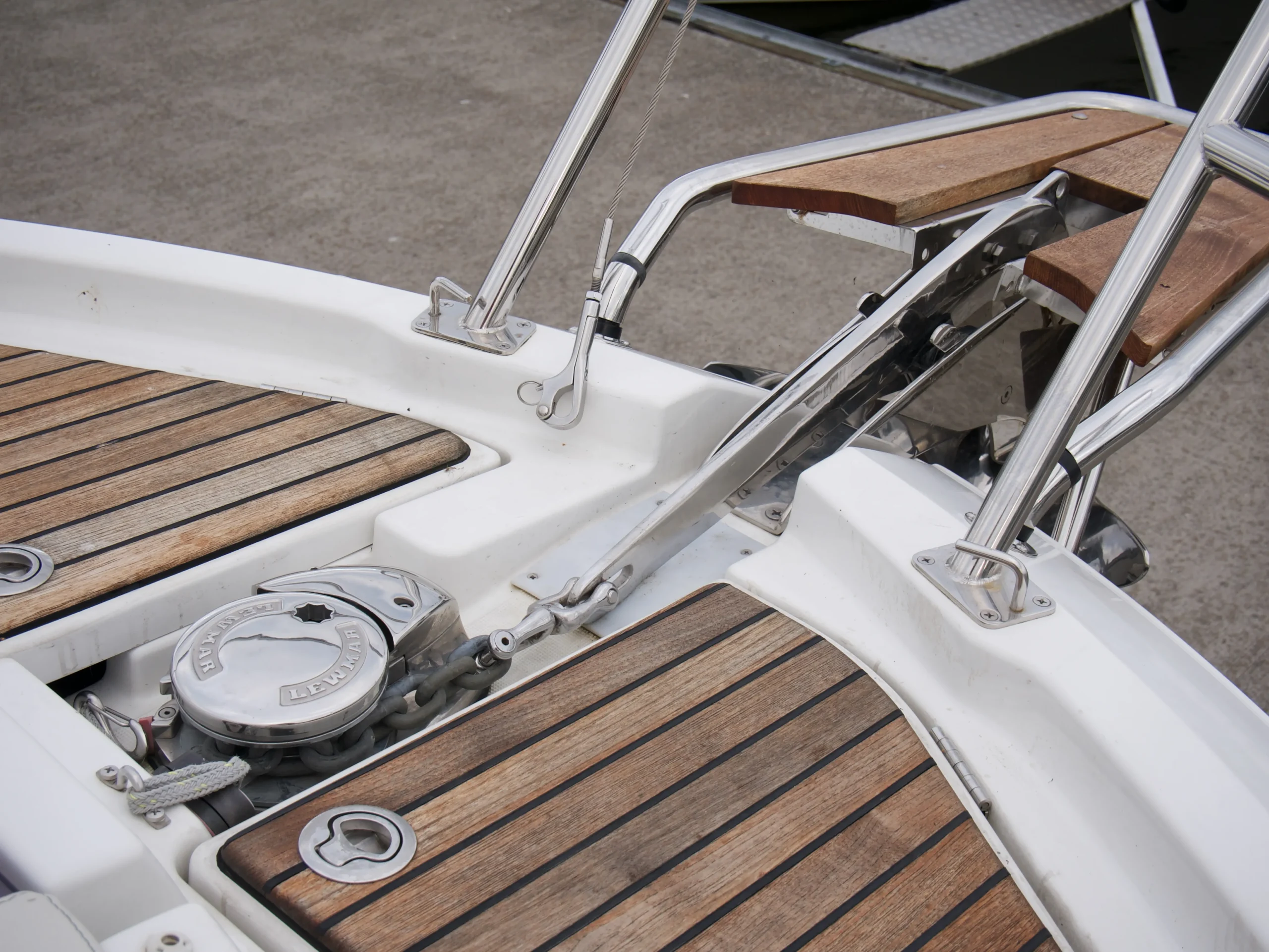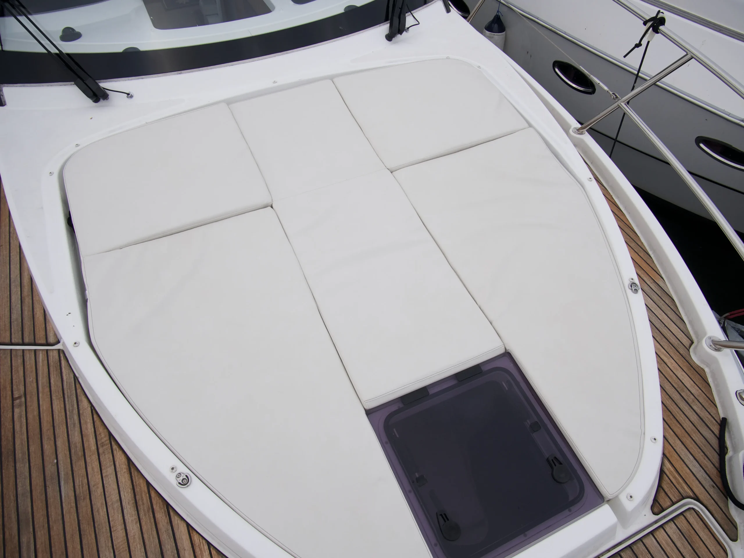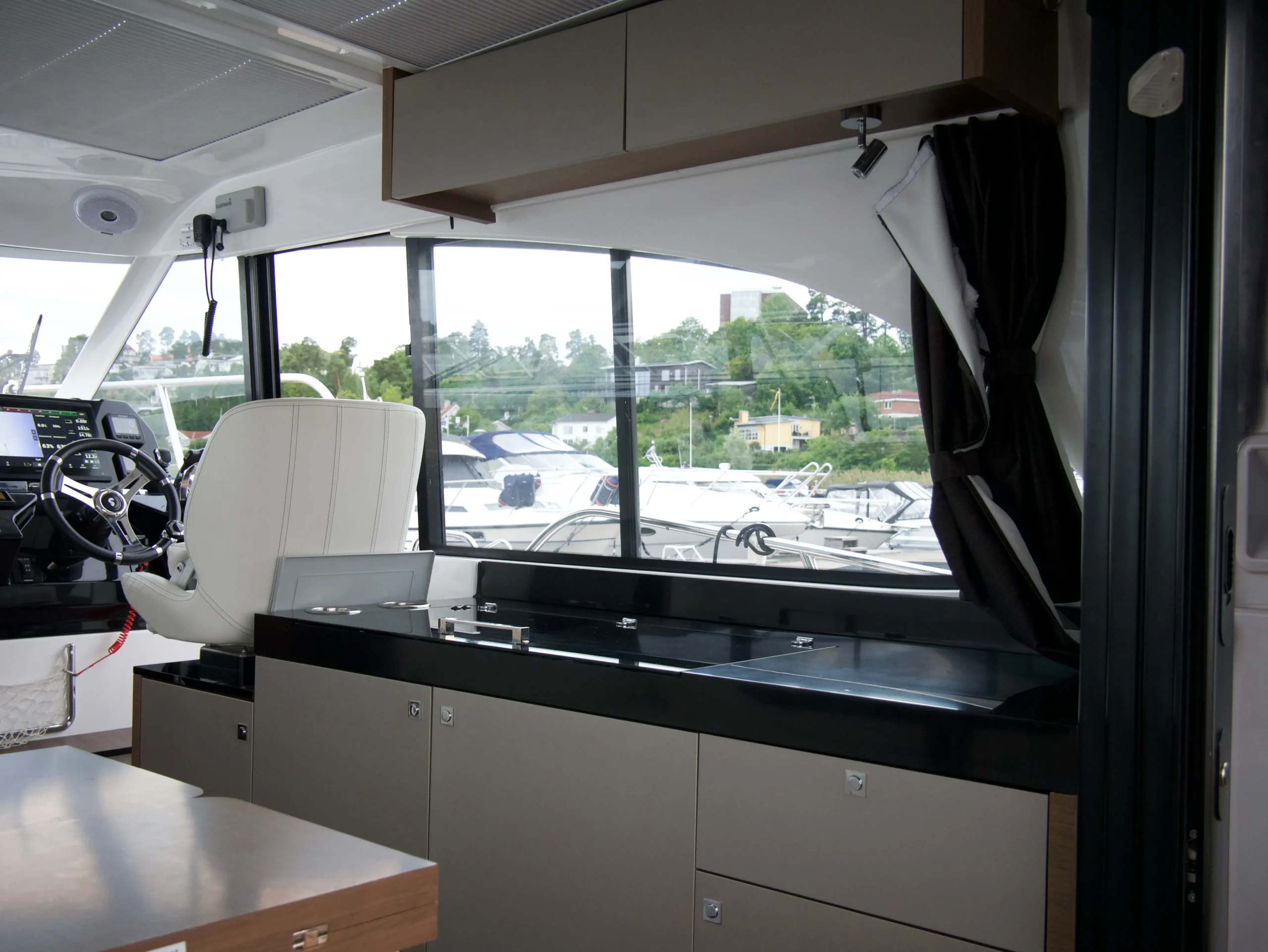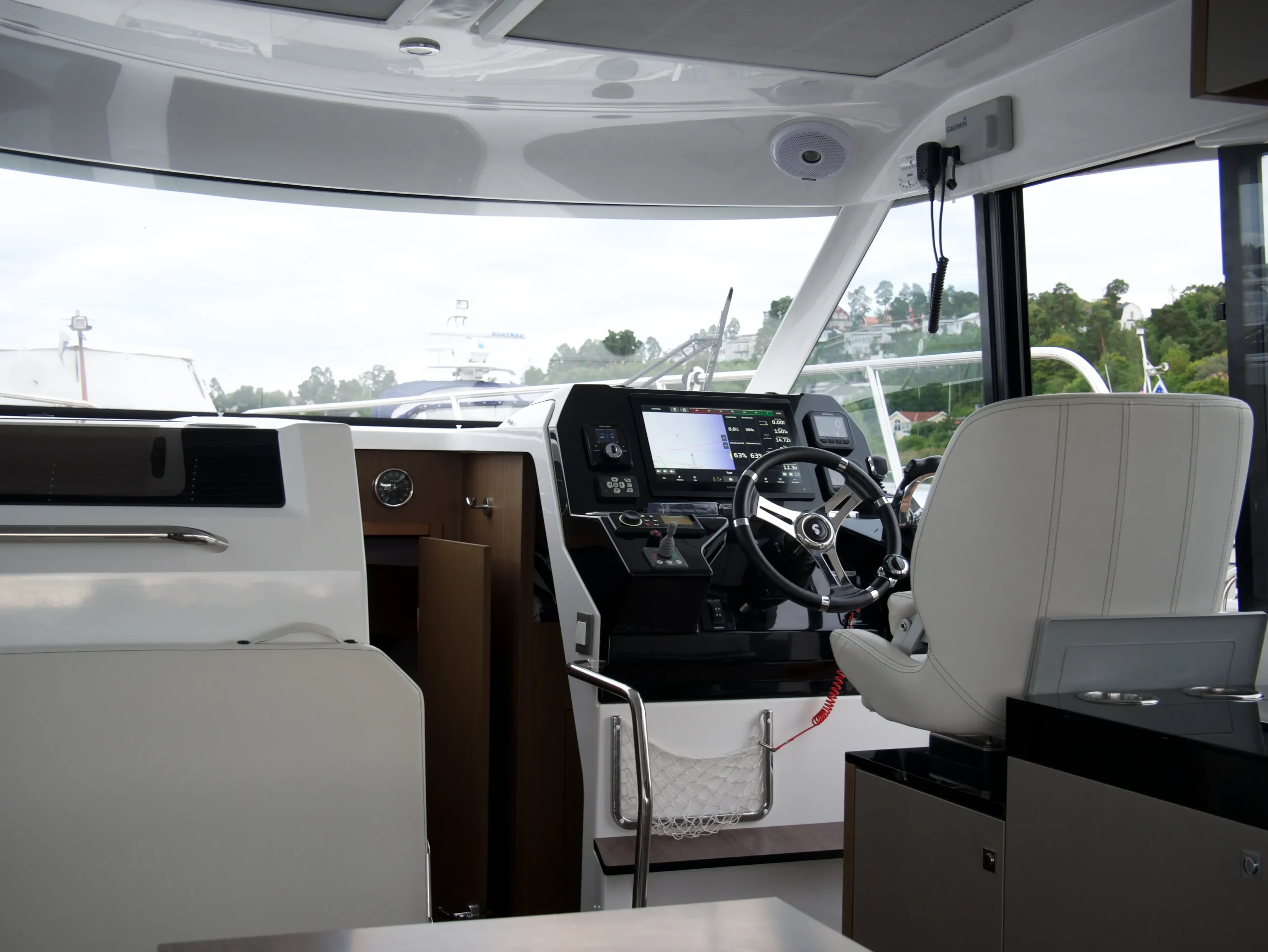 Utrustning: Ankarspel stäv, 2x 80W Solceller, ankarspel Akter, solbädd, bogpropeller, elektrisk toalett, vindrutetorkare, dusch, akterkapell med elektrisk soft-top, autopilot, joystick, Zipwake interceptorer, Garmin 16″ GPSMAP 8416xsv, Webasto diesel värmare, Garmin VHF, sökarljus, signalhorn, teakdäck, kylskåp x2, varmvattenberedare, gasspis, landström, färskvattensystem, mörkläggningsgardiner, ekolod, luftkonditionering, Fusion stereo.