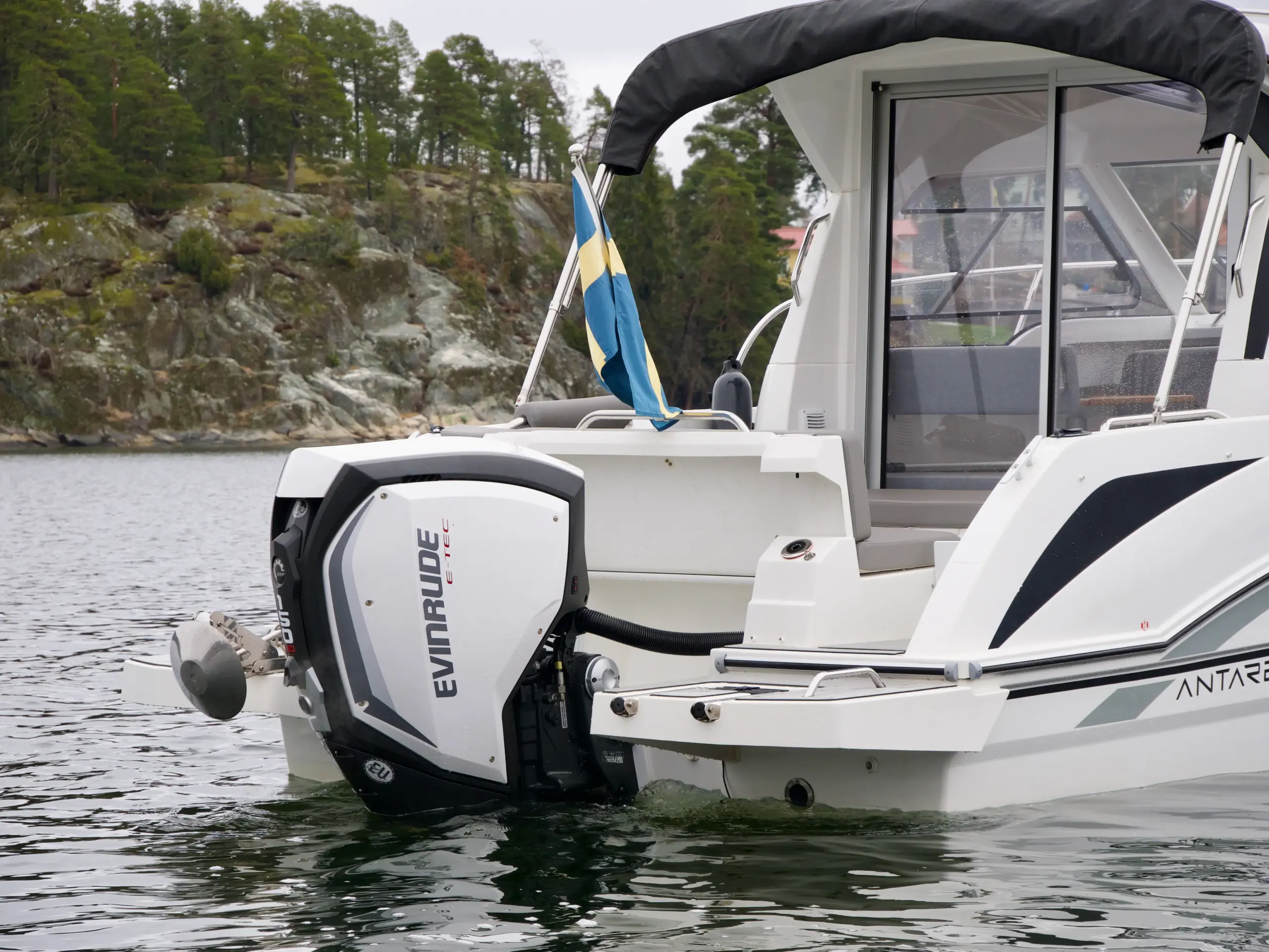 Motorn är en Evinrude E-TEC G2 150 HK. Modellen är känd för sina långa serviceintervaller och höga driftsäkerhet.