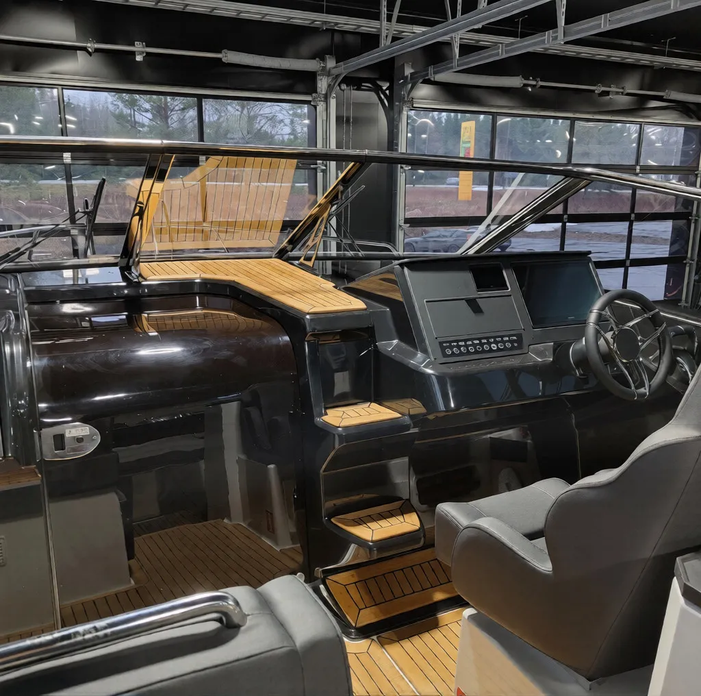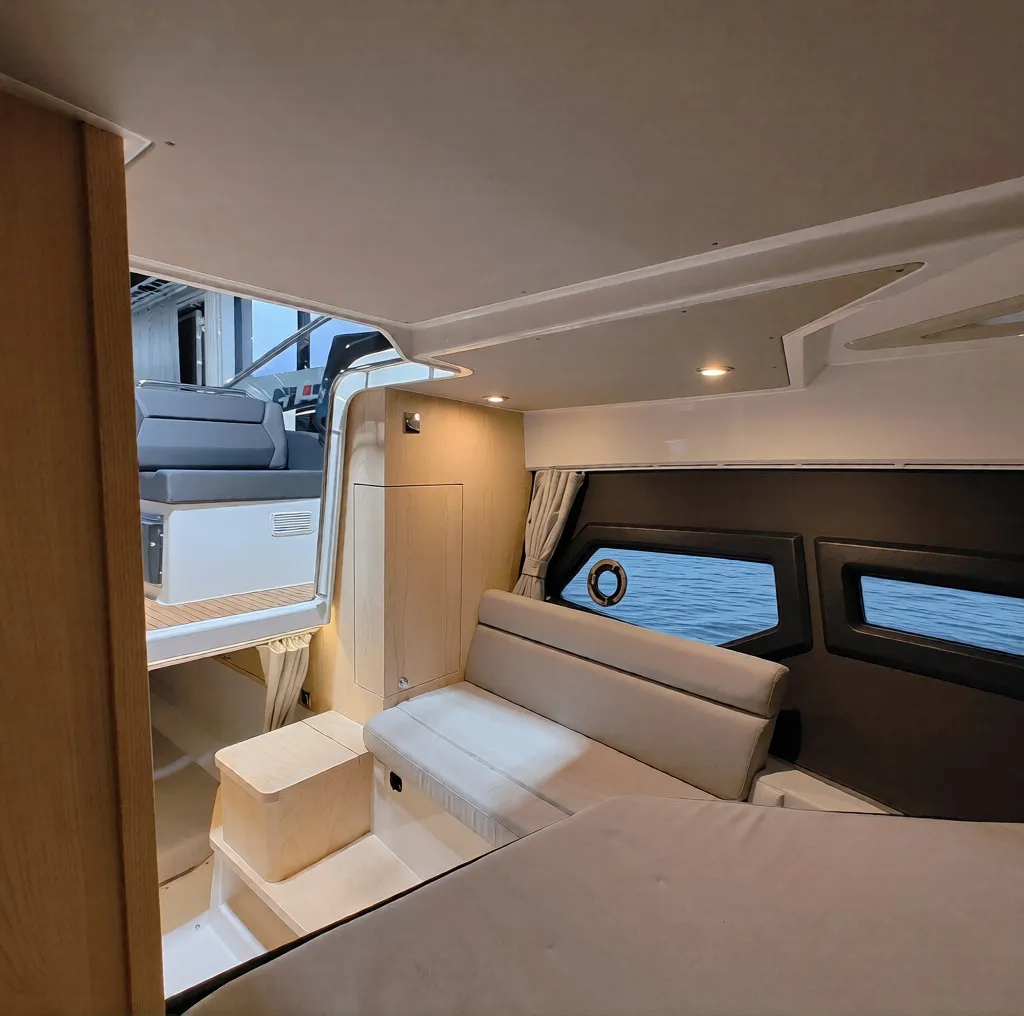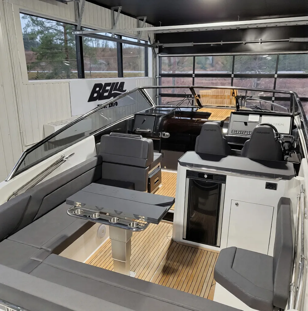 Förarplatsen är försedd med två kaptensstolar och ergonomin bakom ratten är i toppklass. Tillsammans med avancerad navigation från Garmin och elektroniska styrsystem blir körningen både trygg och njutbar – oavsett förhållanden.
