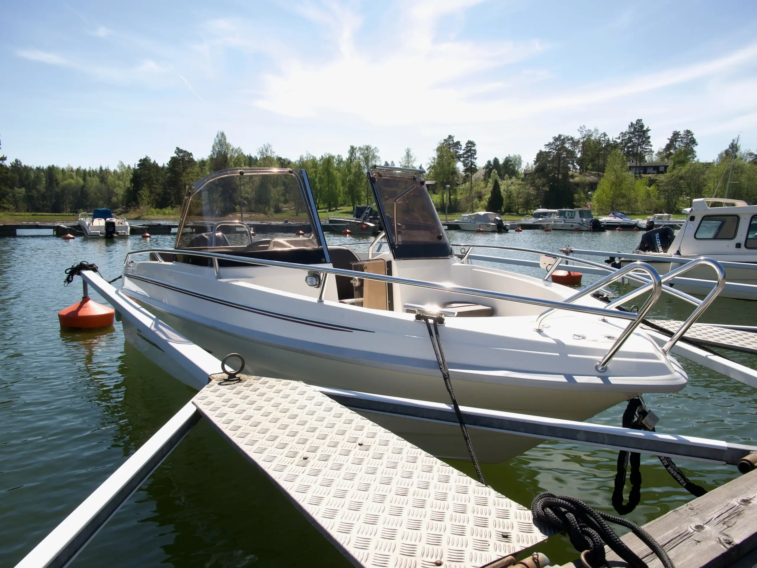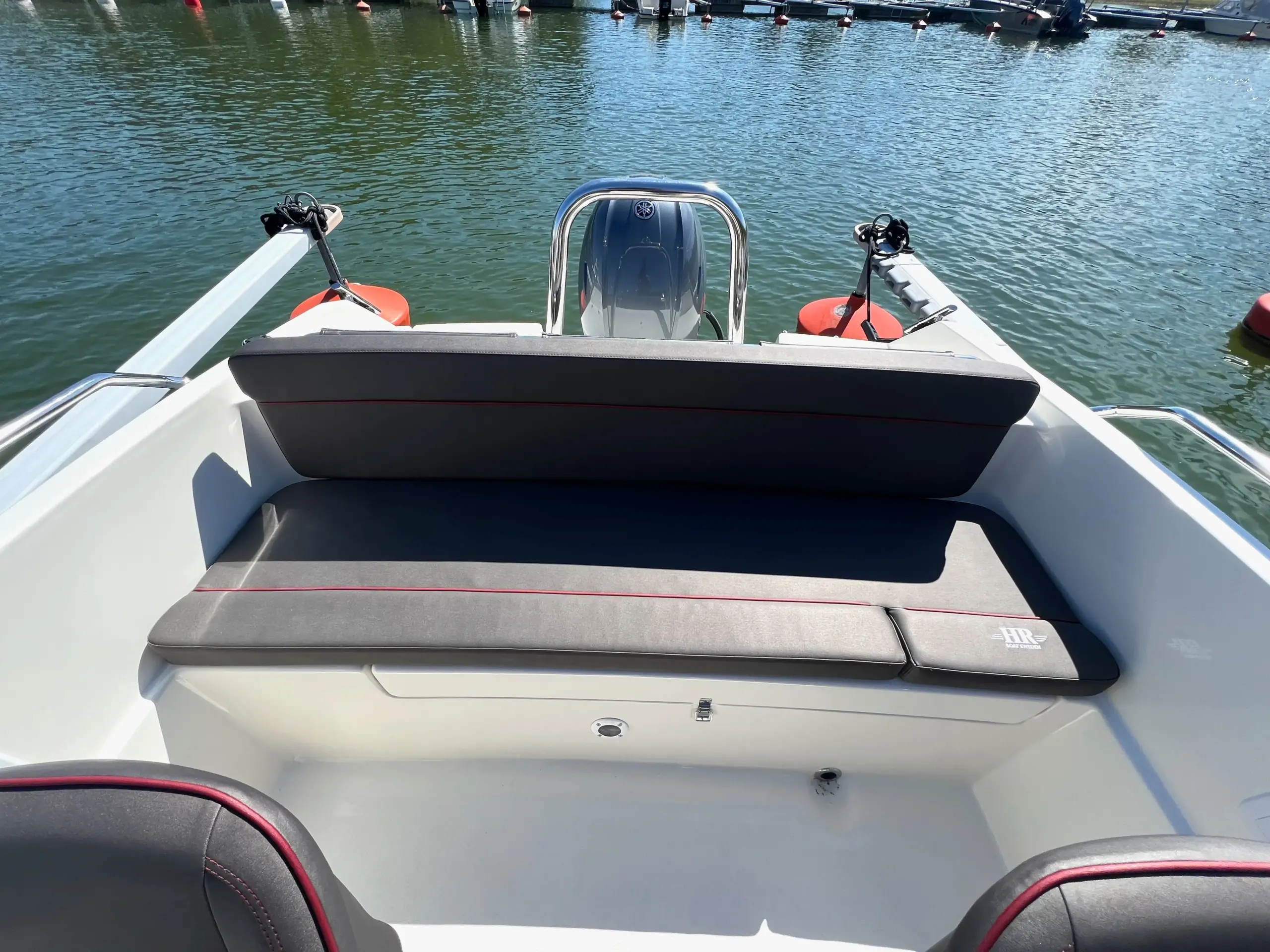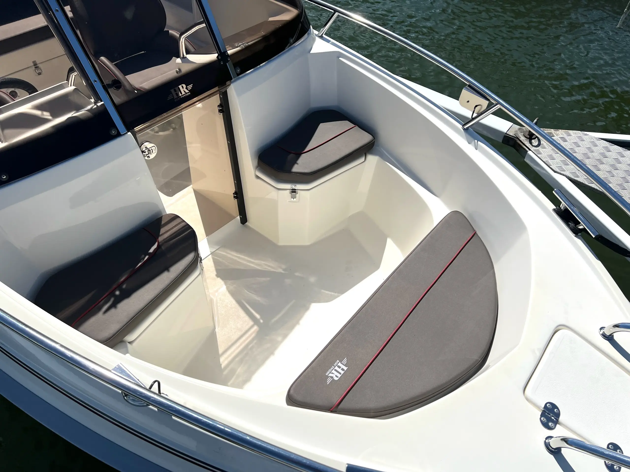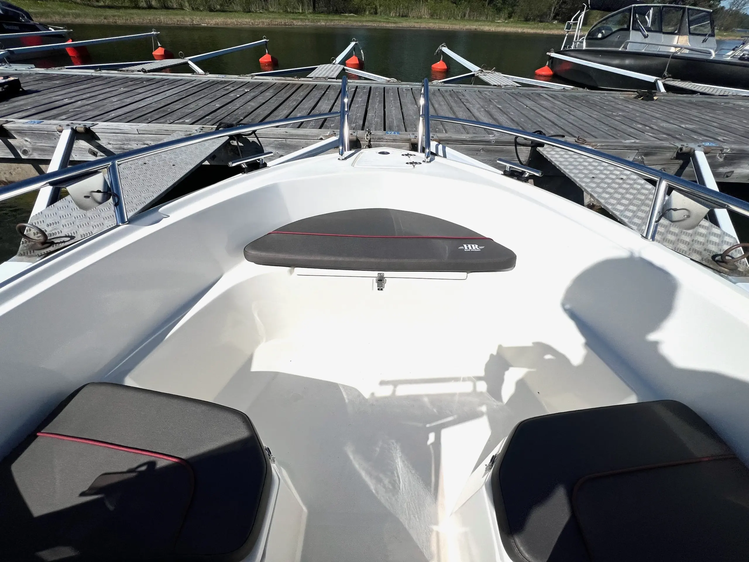 Båten rymmer 5 personer och besättningen sitter skyddat bakom de höga vindrutorna. Det finns även sittplatser med dynsats i fören. Som förare har du en bra överblick runtom båten och nära till hands finns det en 6″ plotter från Garmin för smidig navigering.