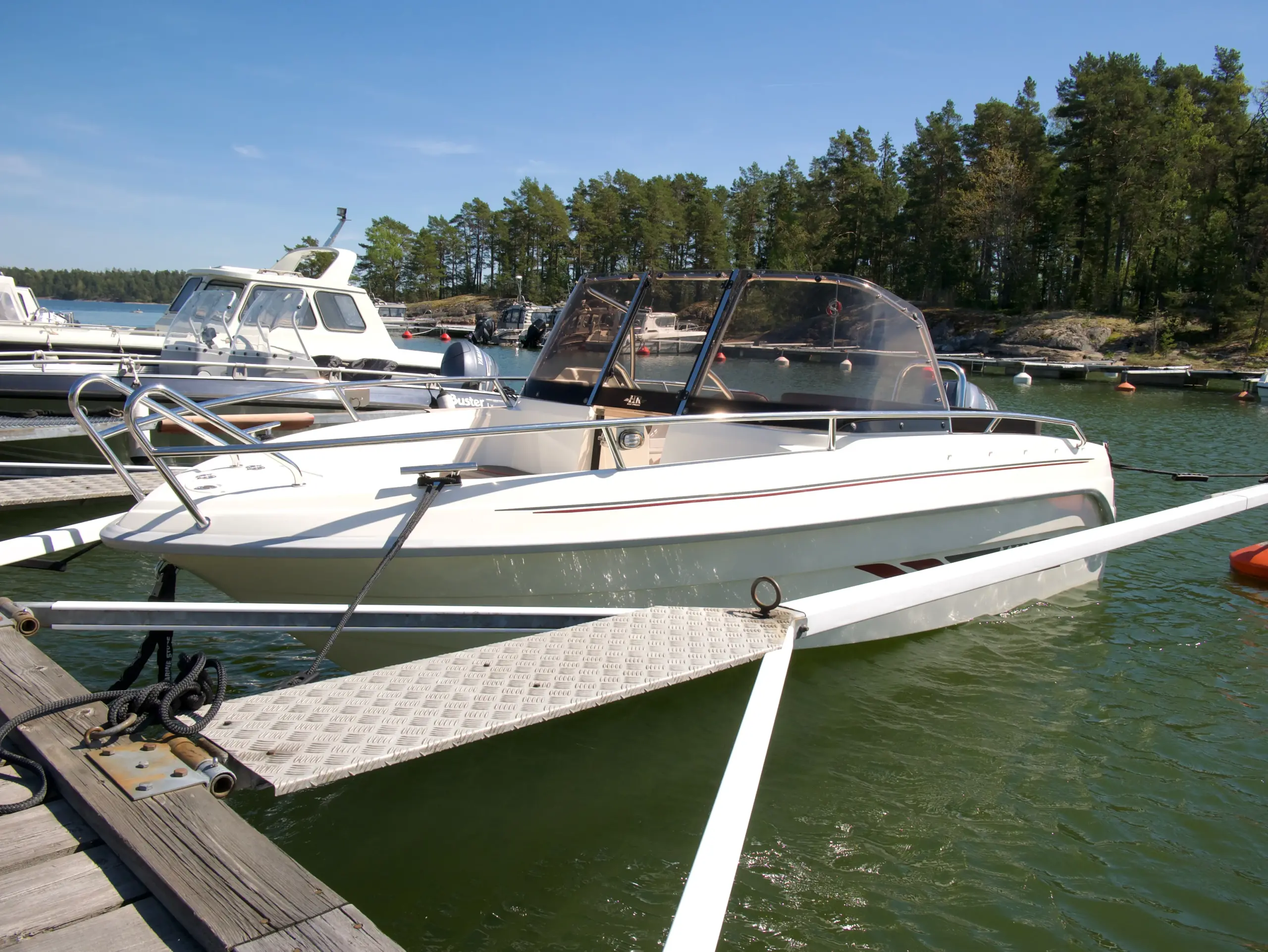 Detta exemplar är utrustat med hamnkapell för att enkelt skydda båten när den inte används.