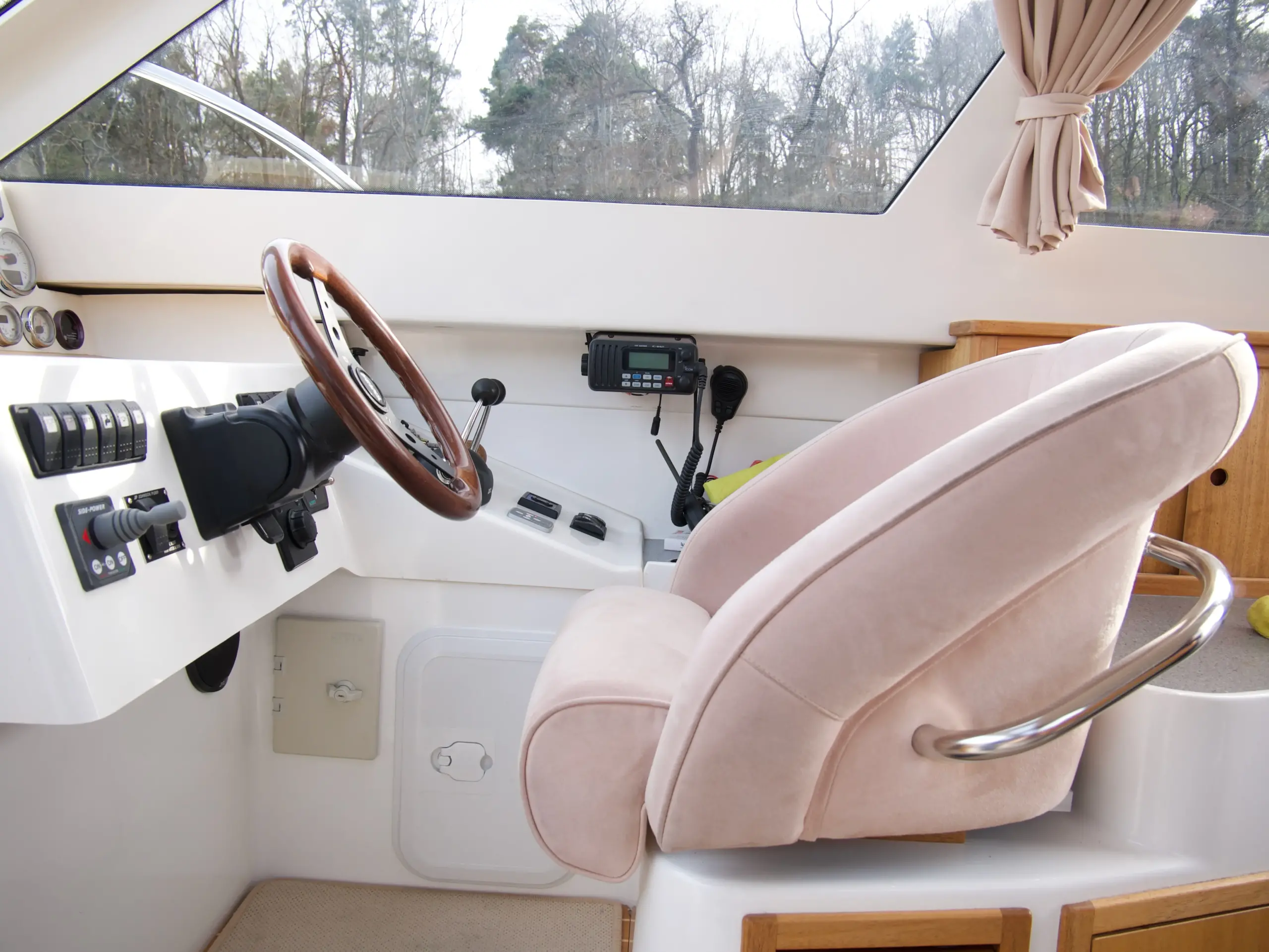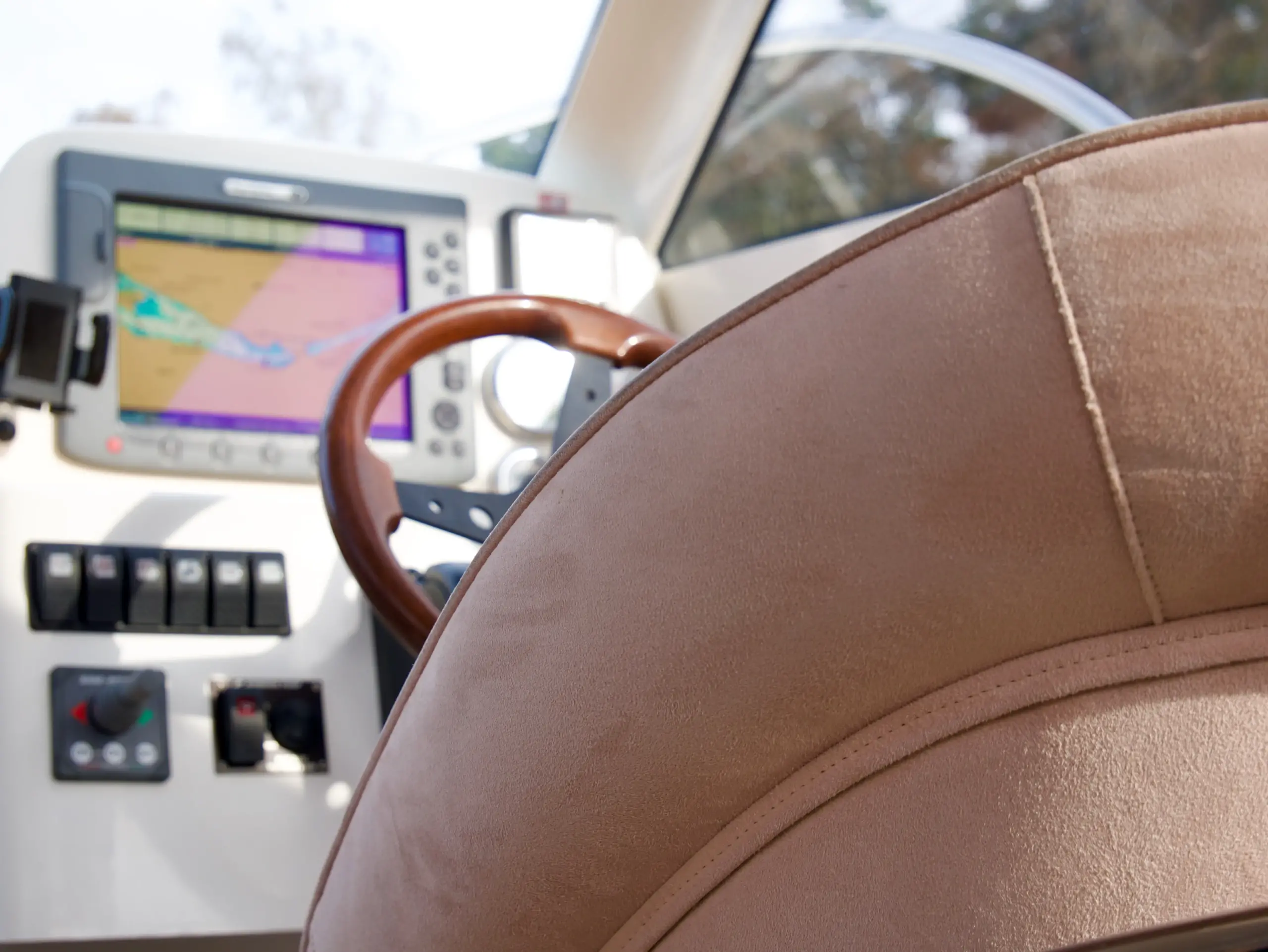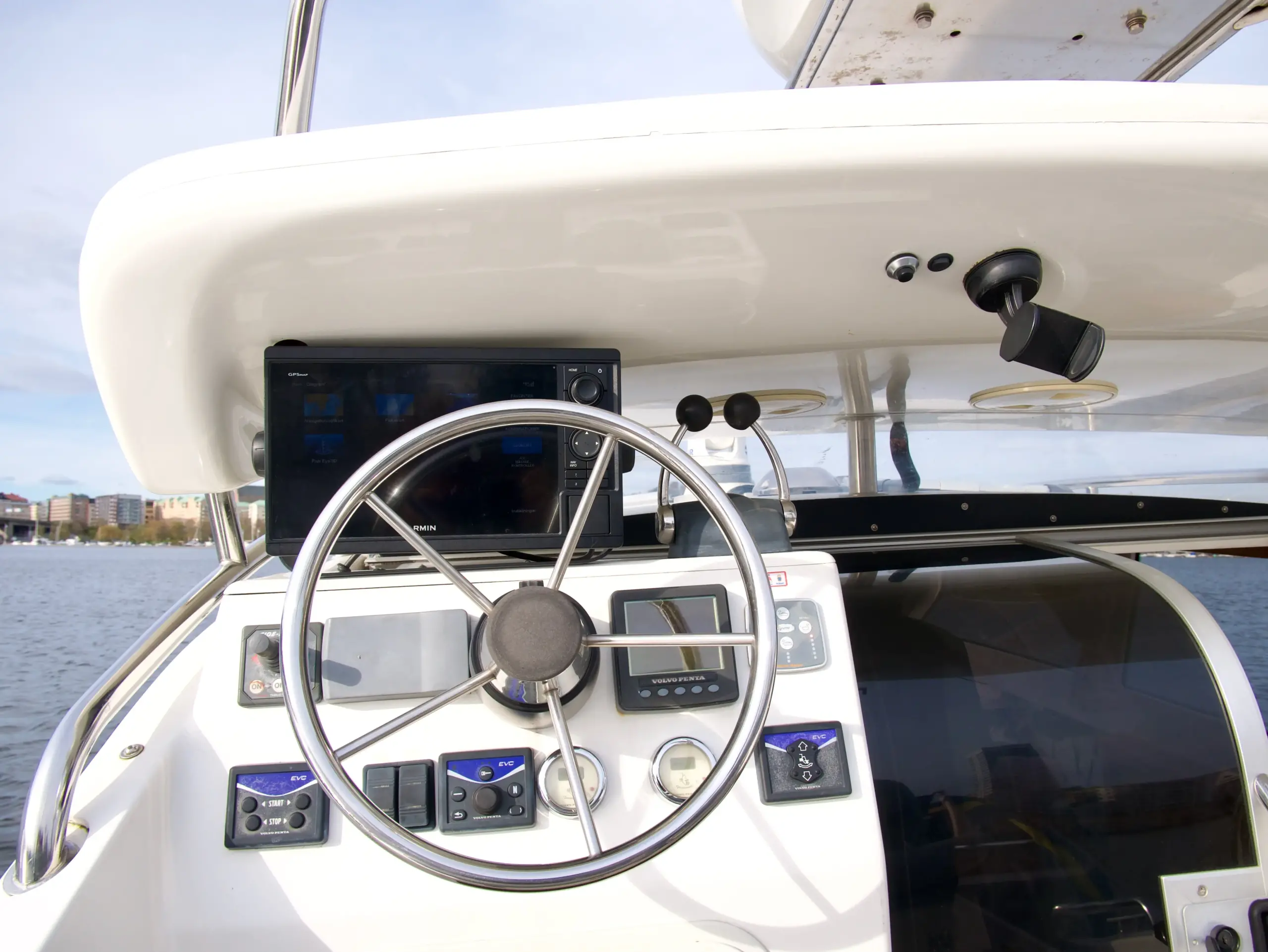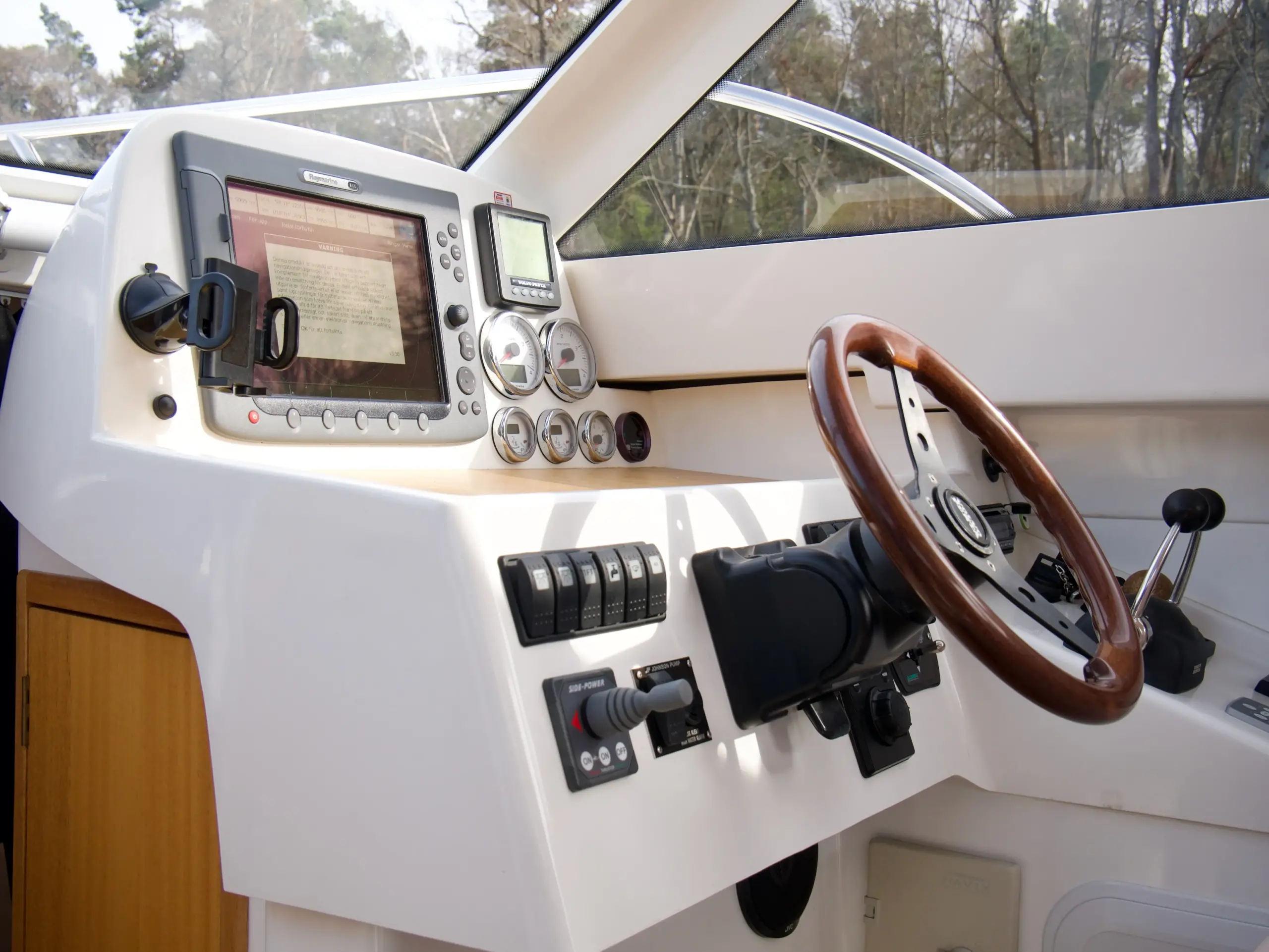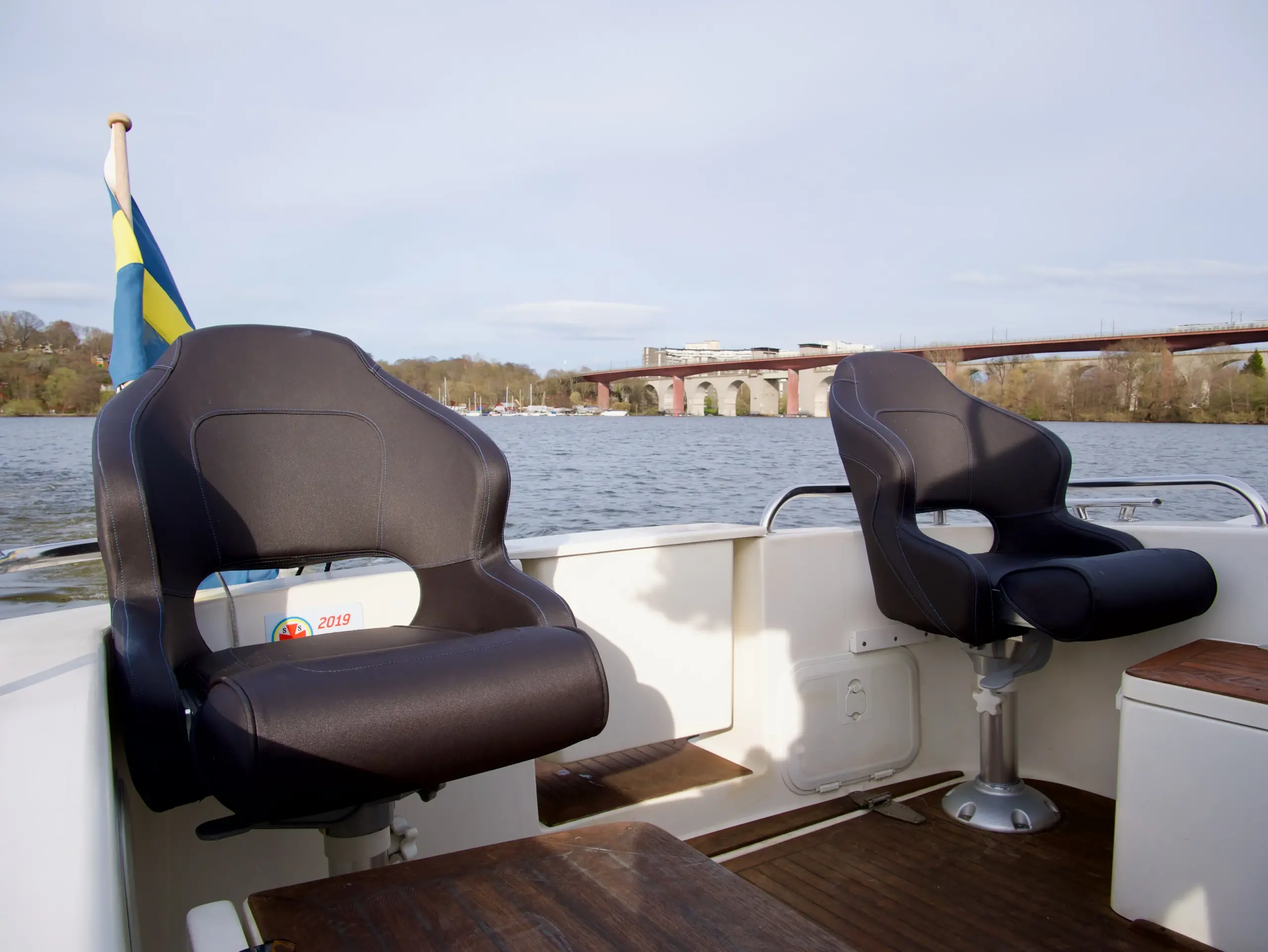 Ombord finns det två styrplatser varav en på akterdäck där föraren har god sikt över hela båten. Styrplatsen är utrustad med hjälpmedel som bland annat en 1022 Garmin plotter, bogpropeller och joystick för trimplan. På akterdäck finns det även sittplatser för 7 personer.