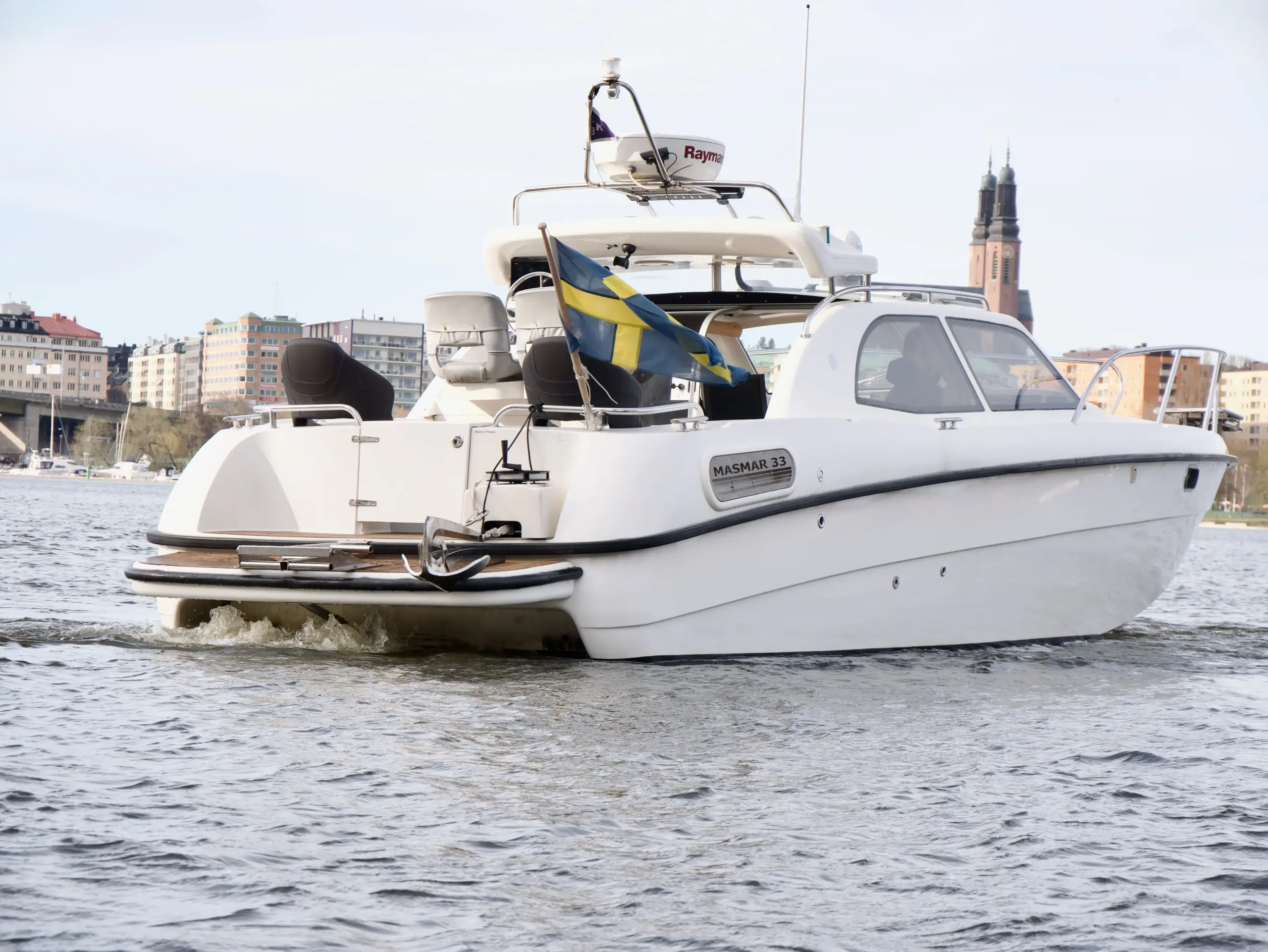 Masmar 33 är en offshore-båt som är byggd för att kunna färdas i höga fart oavsett sjö.