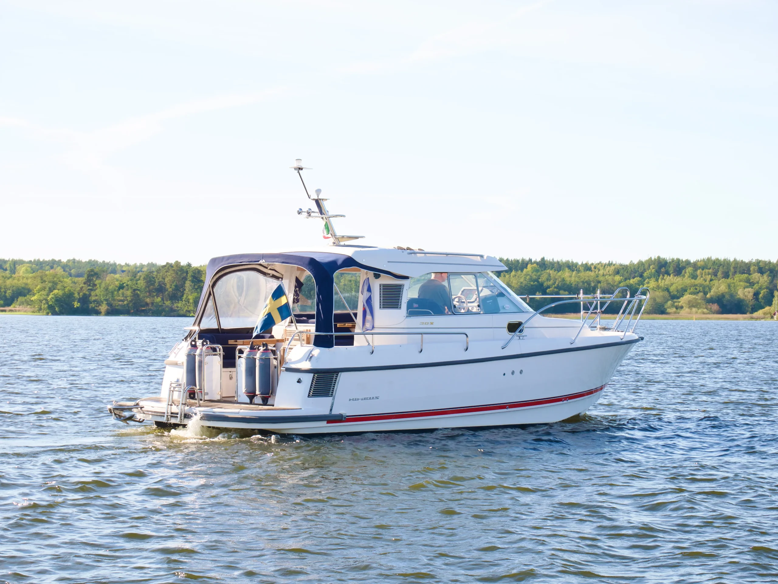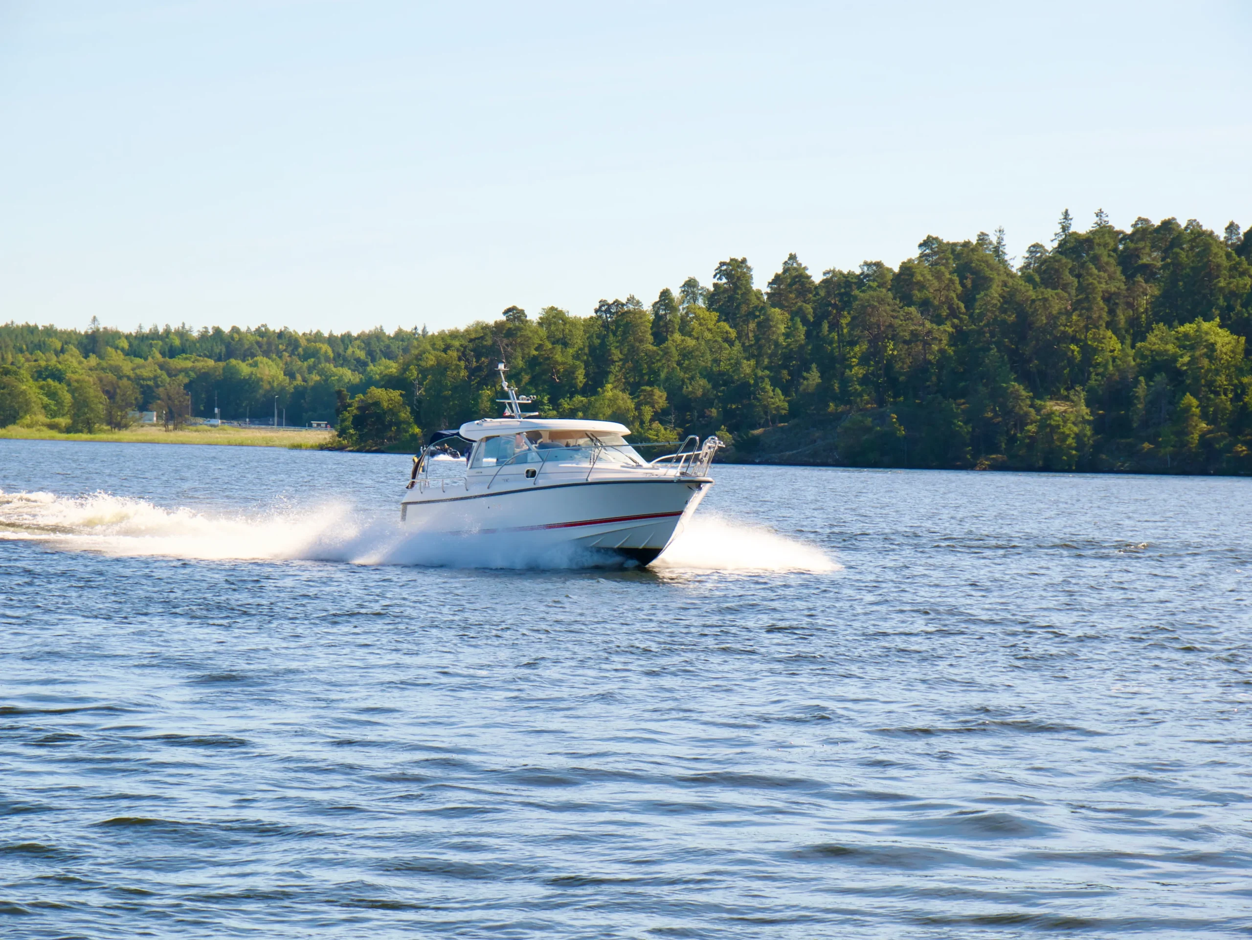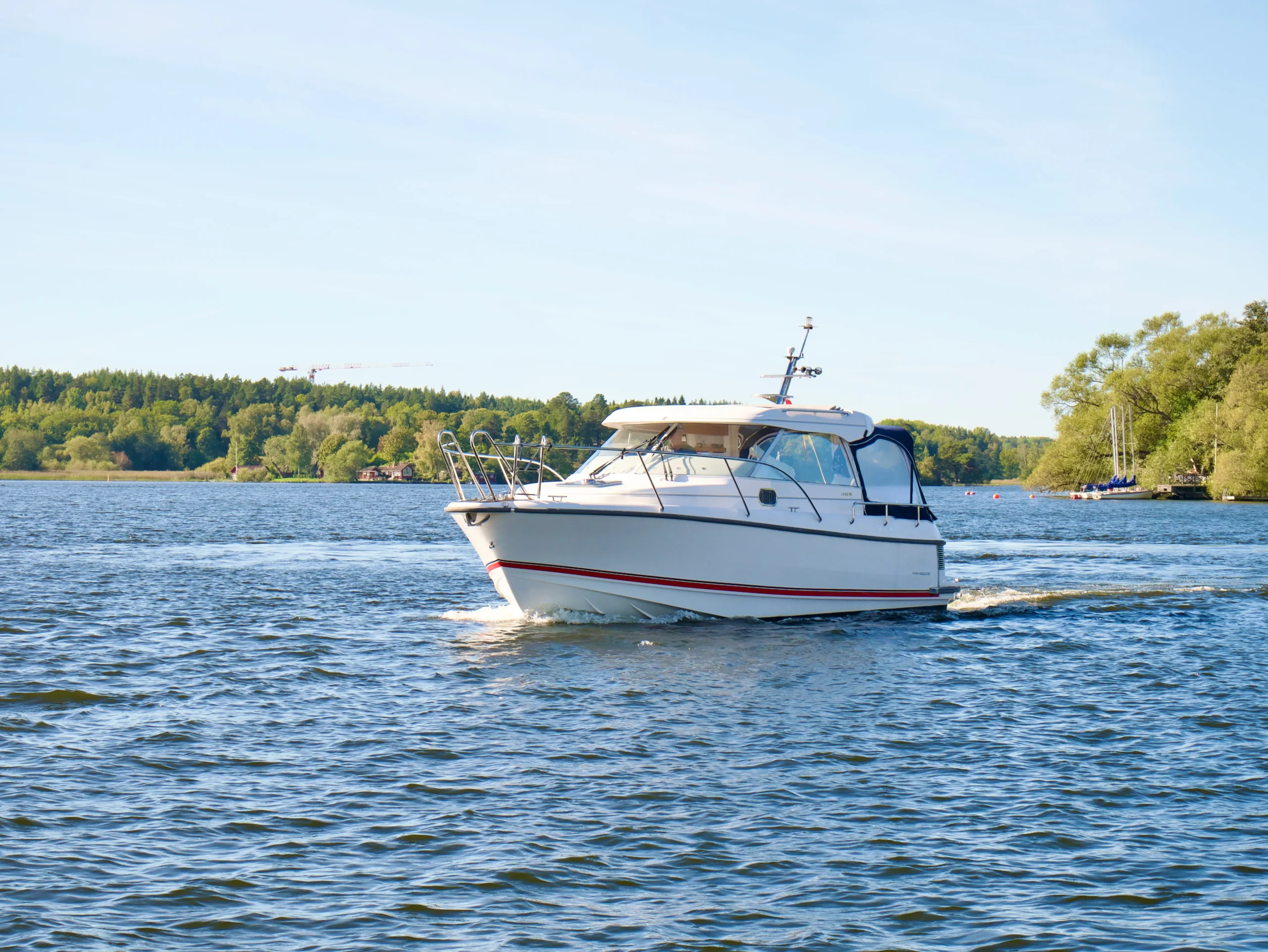 Båten har det vita skrovet vilket förenklar underhållet och ger båten ett tidsenligt intryck.