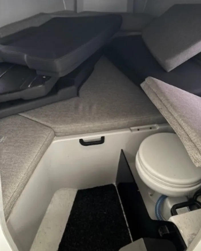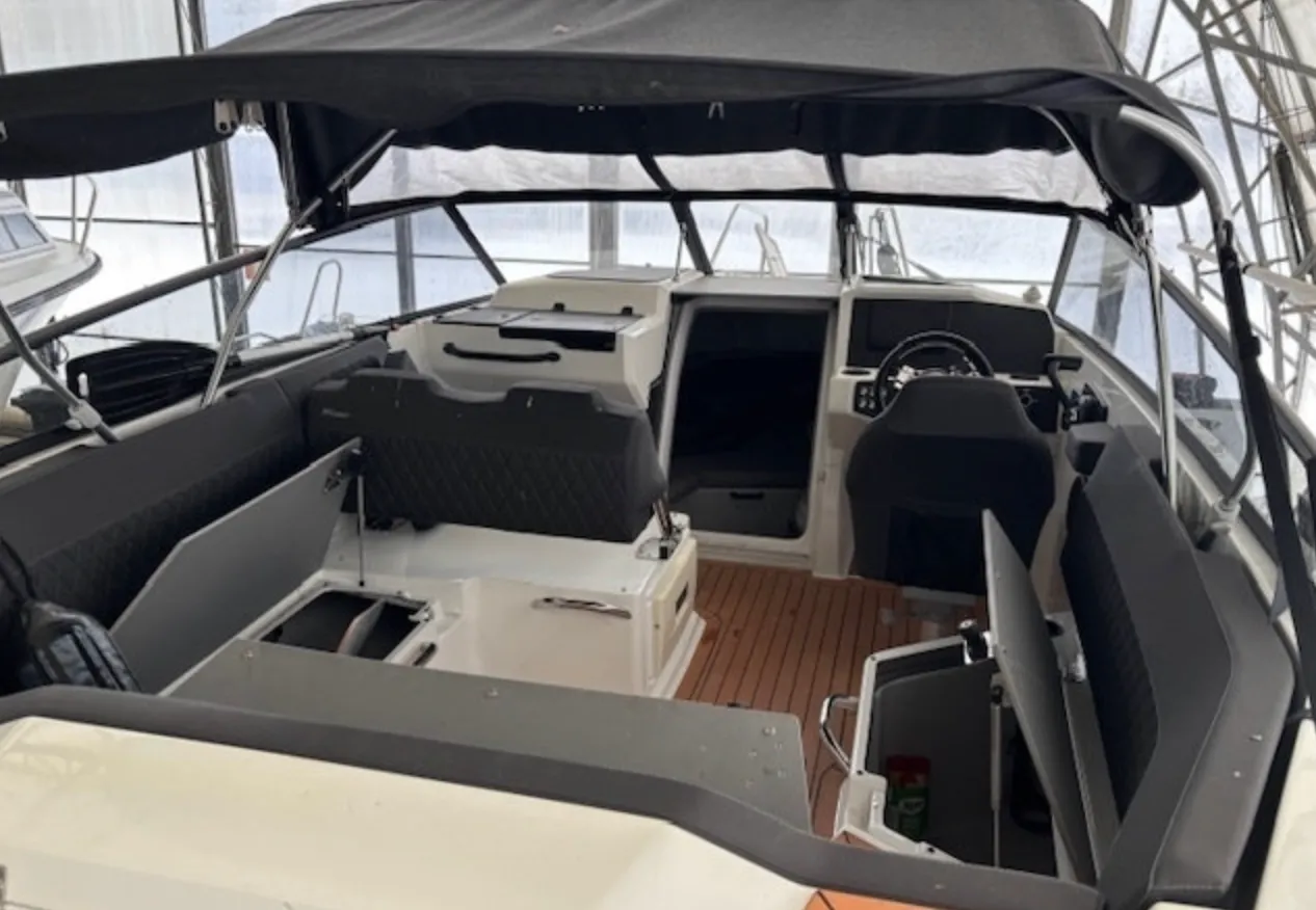 Utrustning: armstöd förarplats, ljudsystem med två högtalare, kylskåp, trimplan, bord i sittbrunn, solbädd, kylskåp Dometic 30L, akterkapell, vattenskidstång, elektrisk spoltoalett, Raymarine plotter, Abloy-lås på stuvfack, vindrutetorkare, hydraulstyrning, dubbla batterier, kompositteak, defroster vindruta.