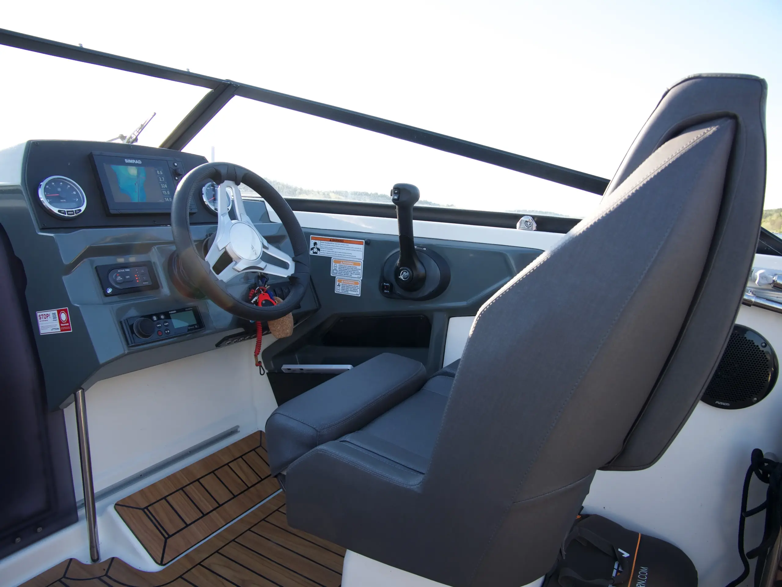Båten är utrustad med följande utrustning: Simrad plotter, hydraulstyrning, vindrutetorkare, akterkapell + hamnkapell, bord till sittbrunnen, solbädd, dynor till kabin, brandsläckare, länspump, låsögla 2x, läslampor, sjökort till plotter, ekolodsgivare.