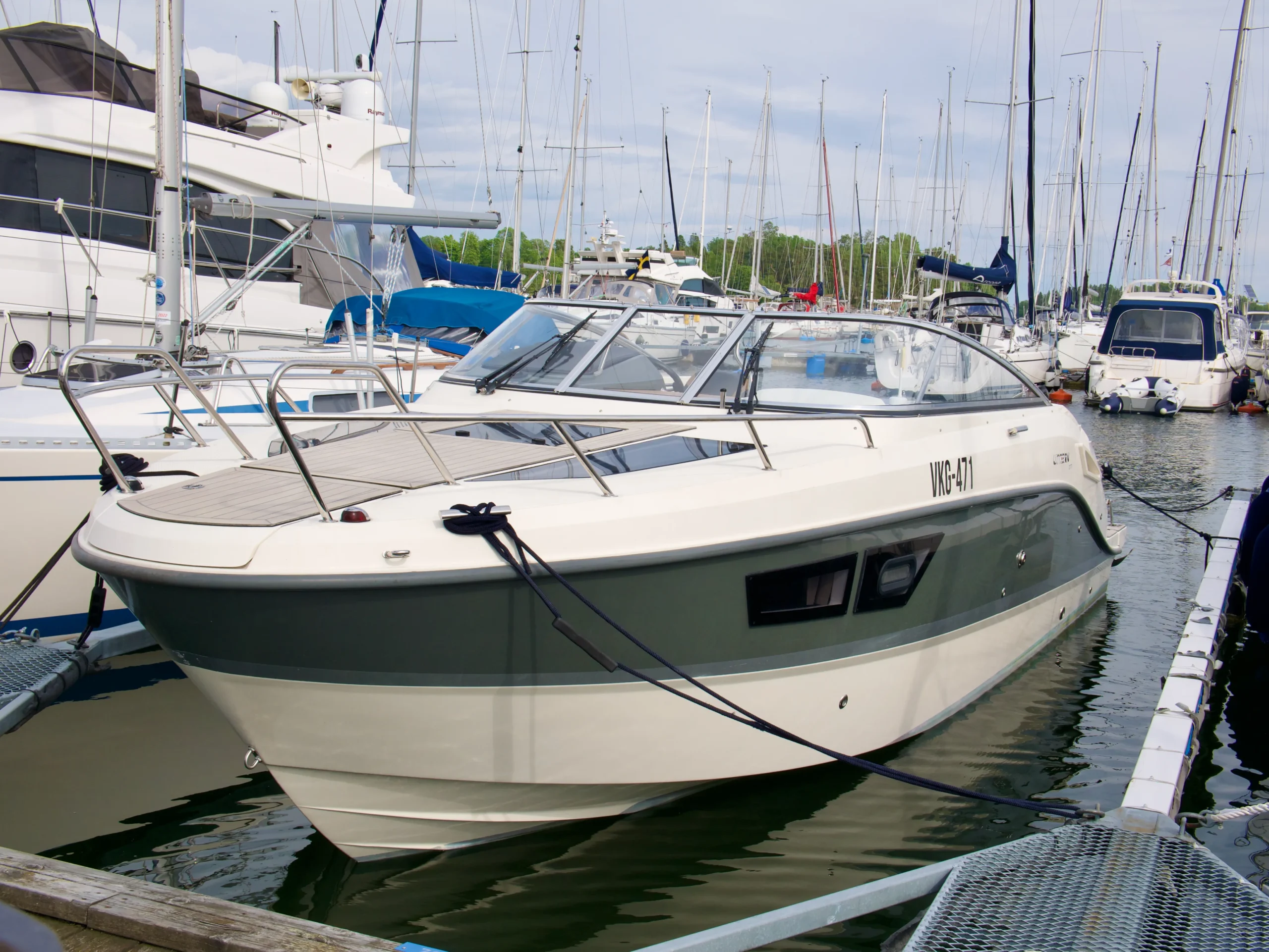Utrustning: Premiumpaket Editition: dusch, vattenskidstång, Kylskåp, Wallas spis med värmefläktslock, dieselvärmare, gardiner, stereo Fusion stereo, Simrad GPS/ekolod, landström, aktermonterat ankarspel med fjärrkontroll, förlängd badplattform, trimplan, bogpropeller, hamnkapell, motorlås, Securemark.