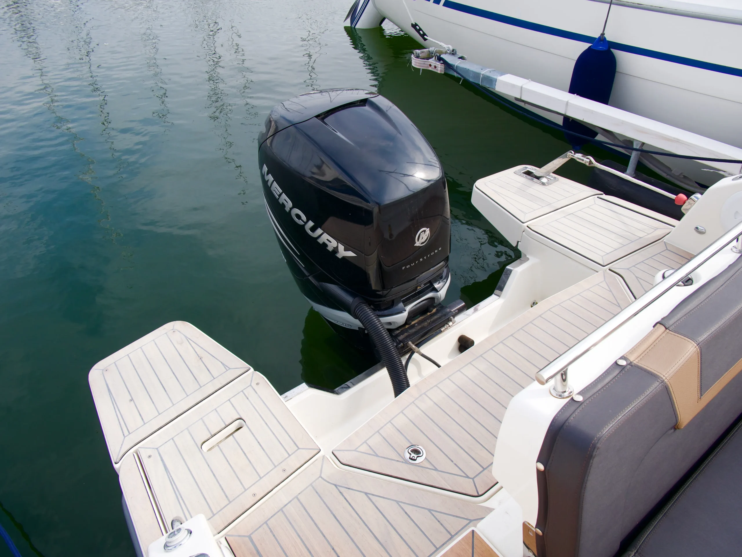 Båten drivs av en kraftfull Mercury-motor på 250 hk, som är regelbundet servad och har gått 245 timmar. Den ger båten utmärkta köregenskaper och snabb acceleration upp i plan.