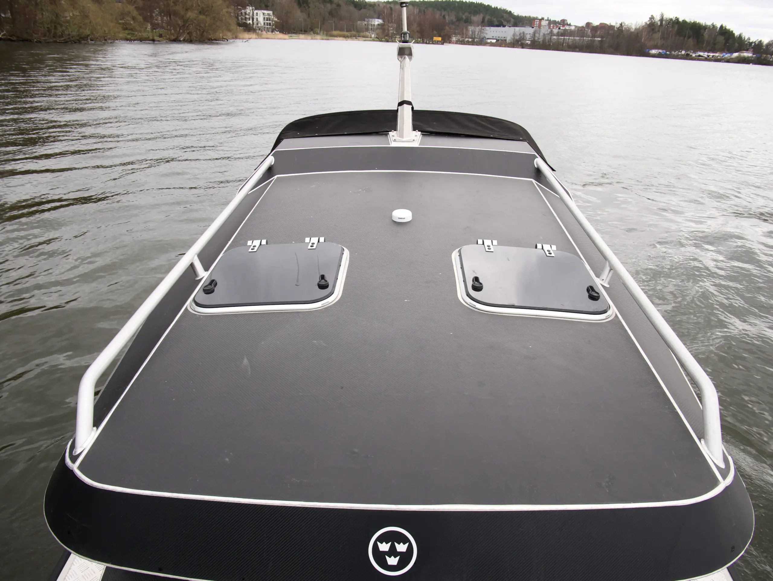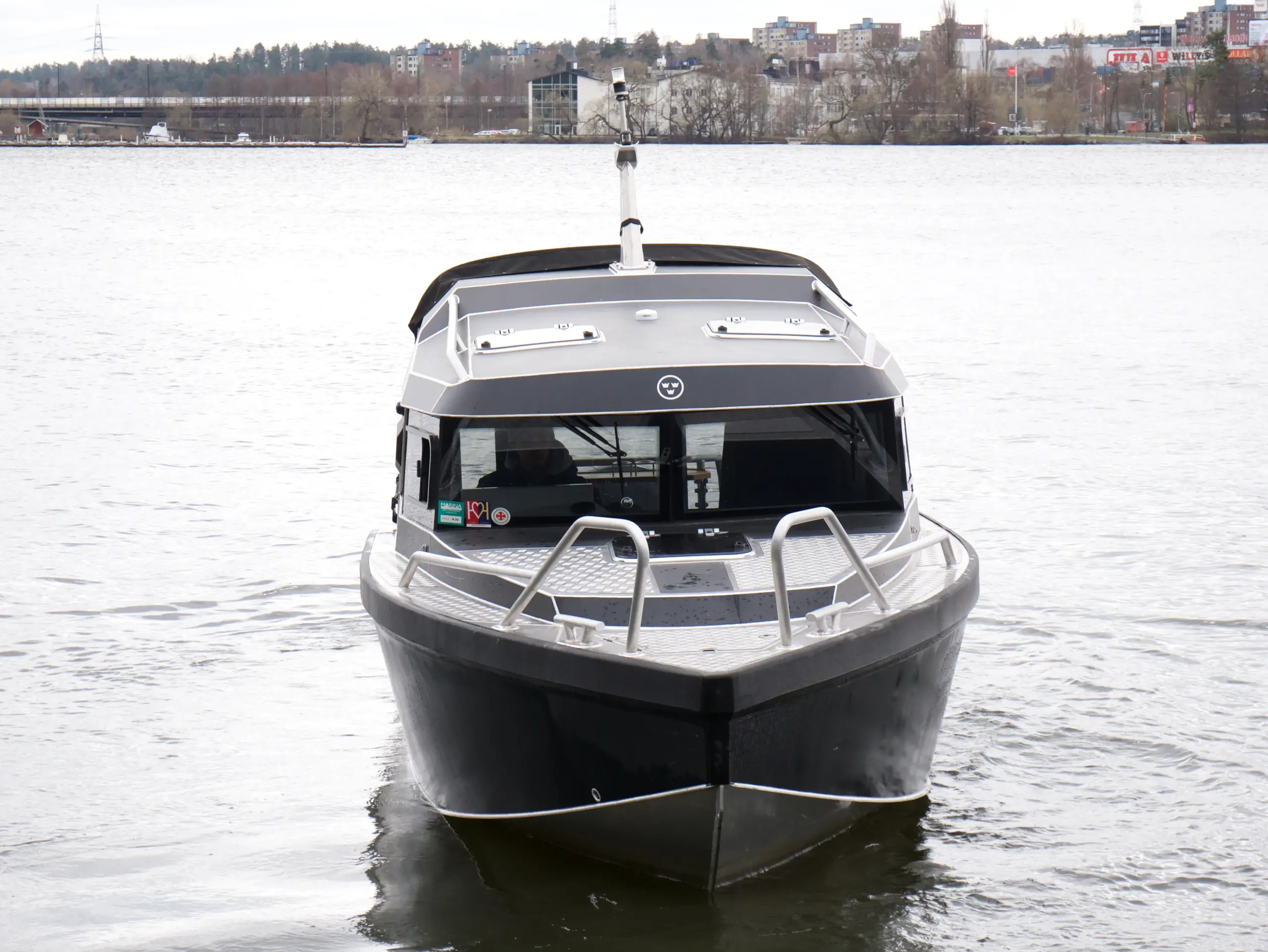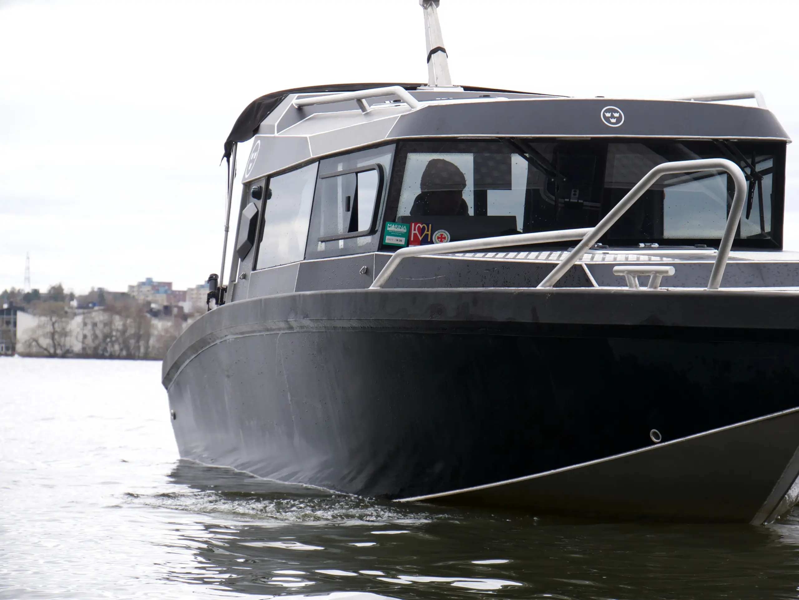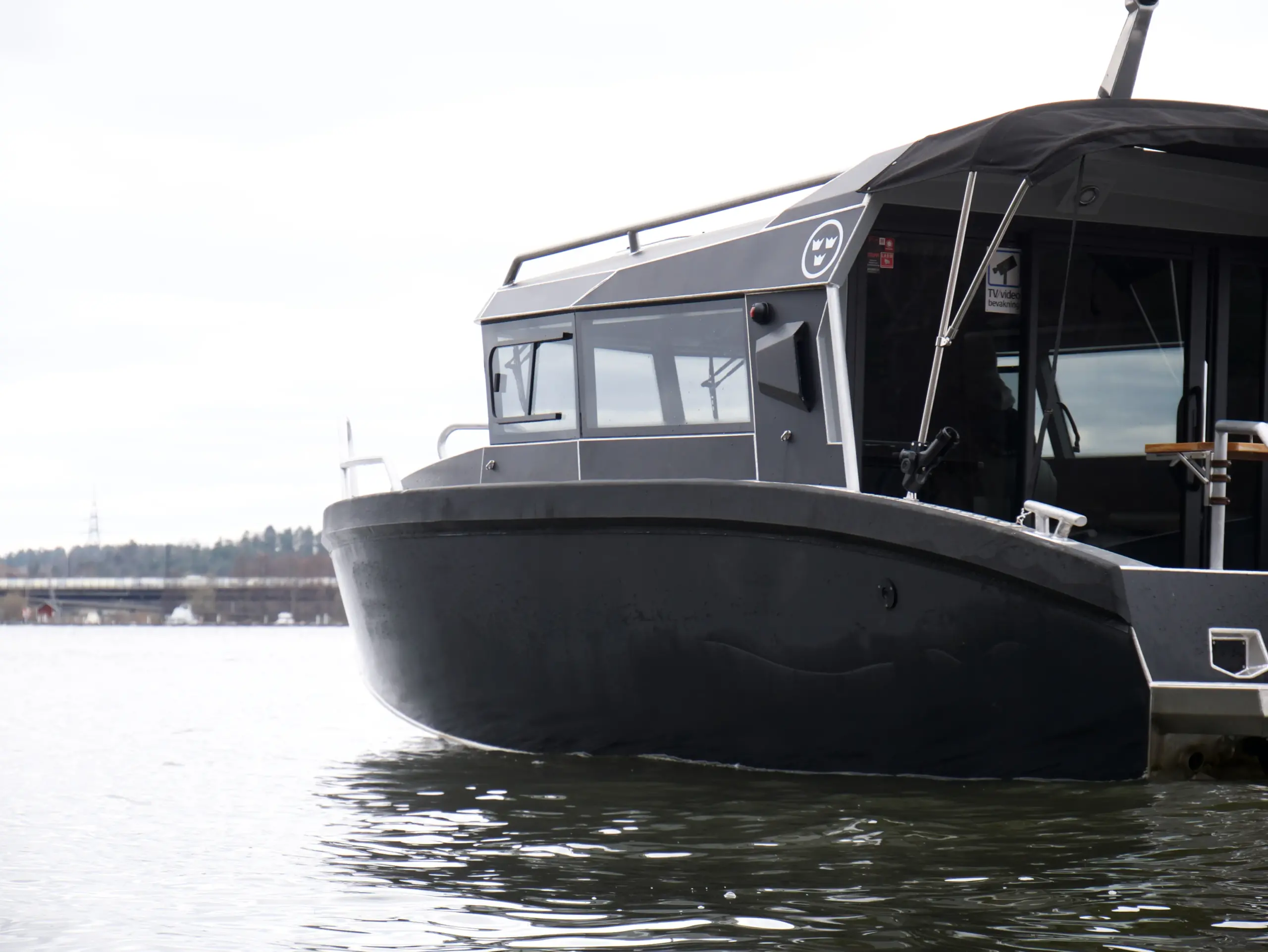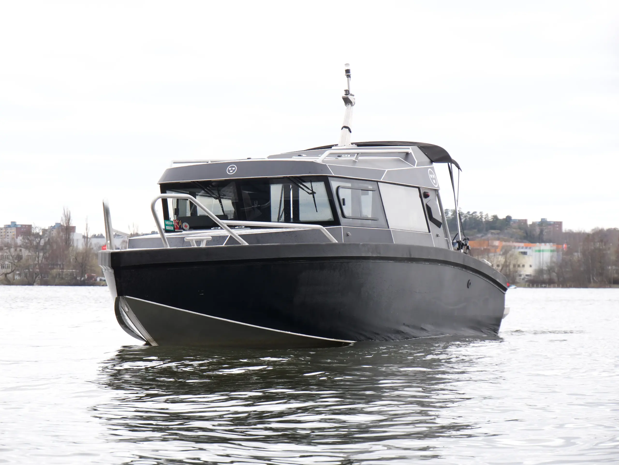 Båten har foilerad överbyggnad vilket ger den ett modern och stilrent utseende.