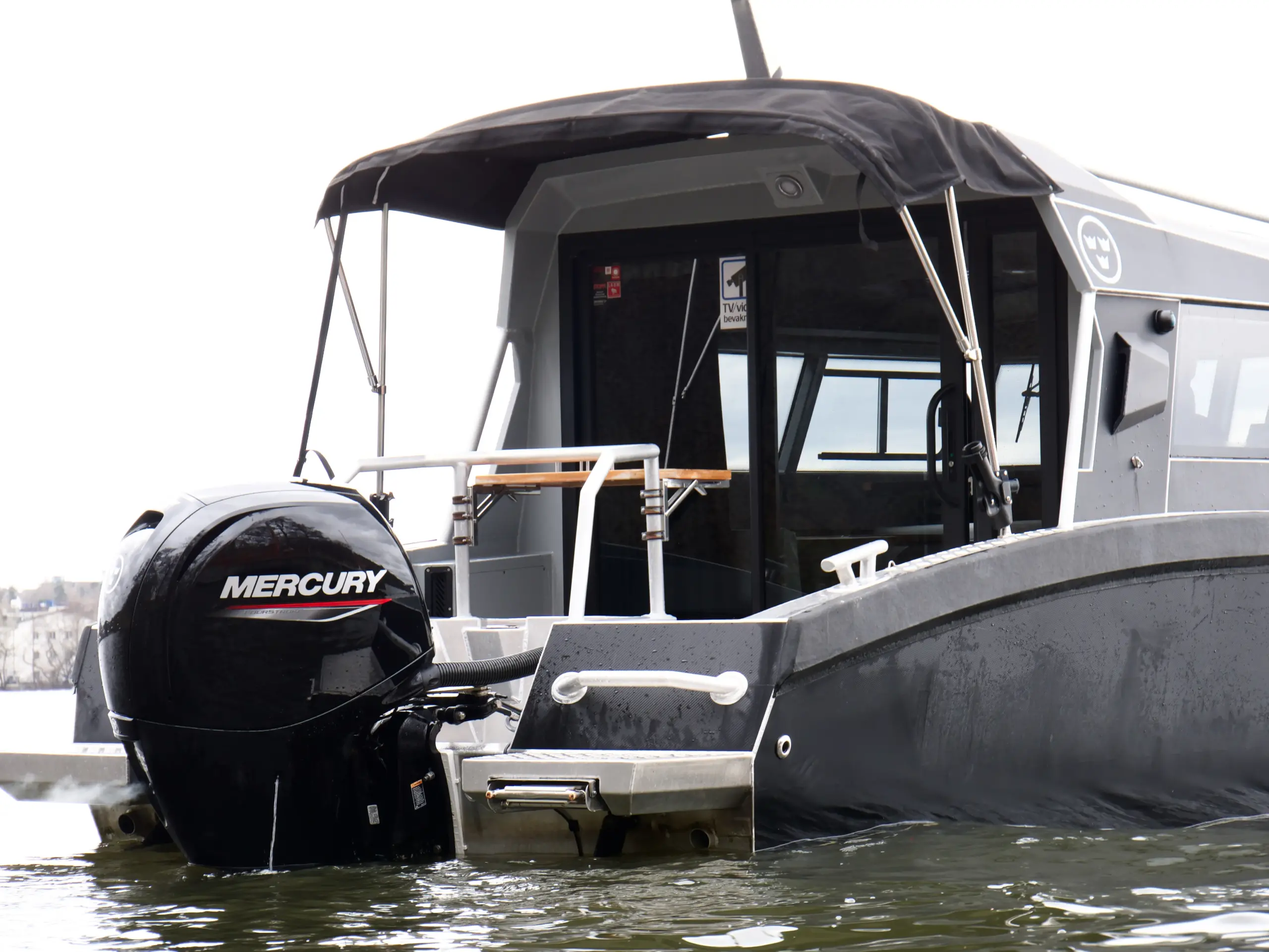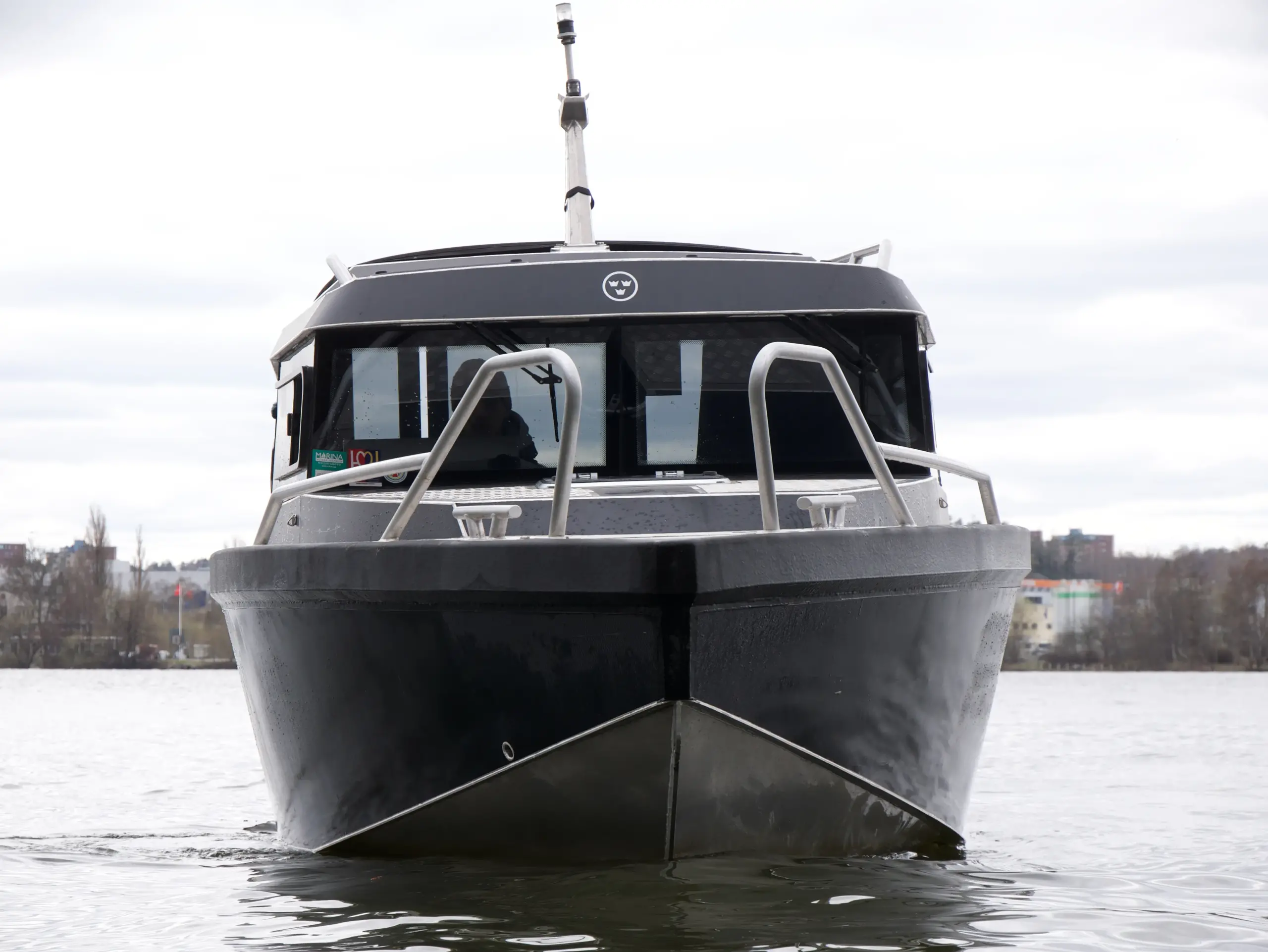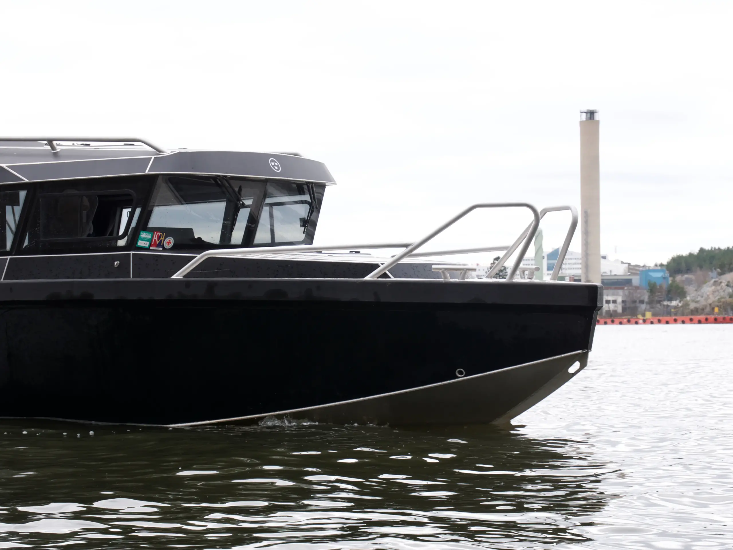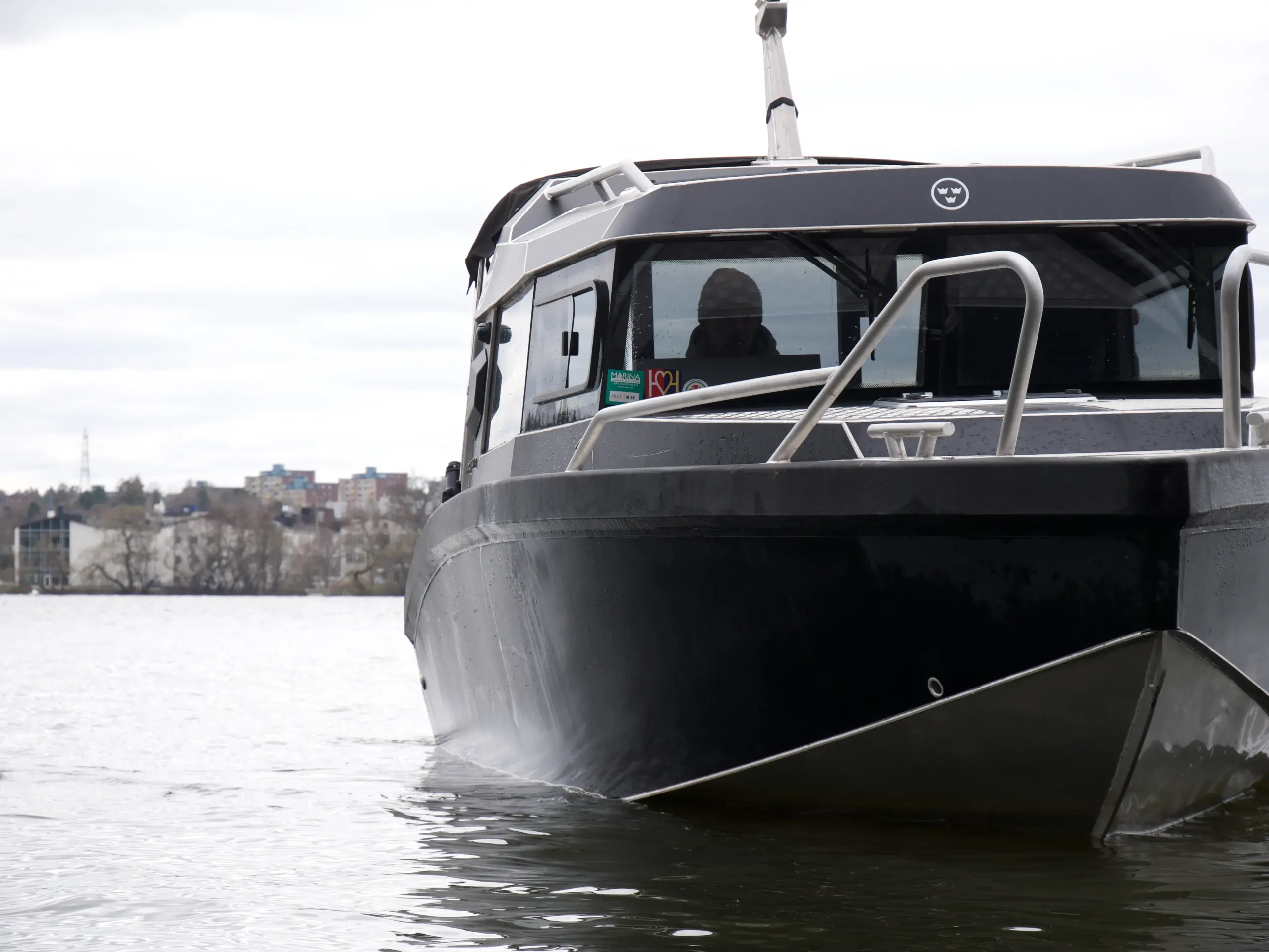 Båten har foilerad överbyggnad vilket ger den ett modern och stilrent utseende.