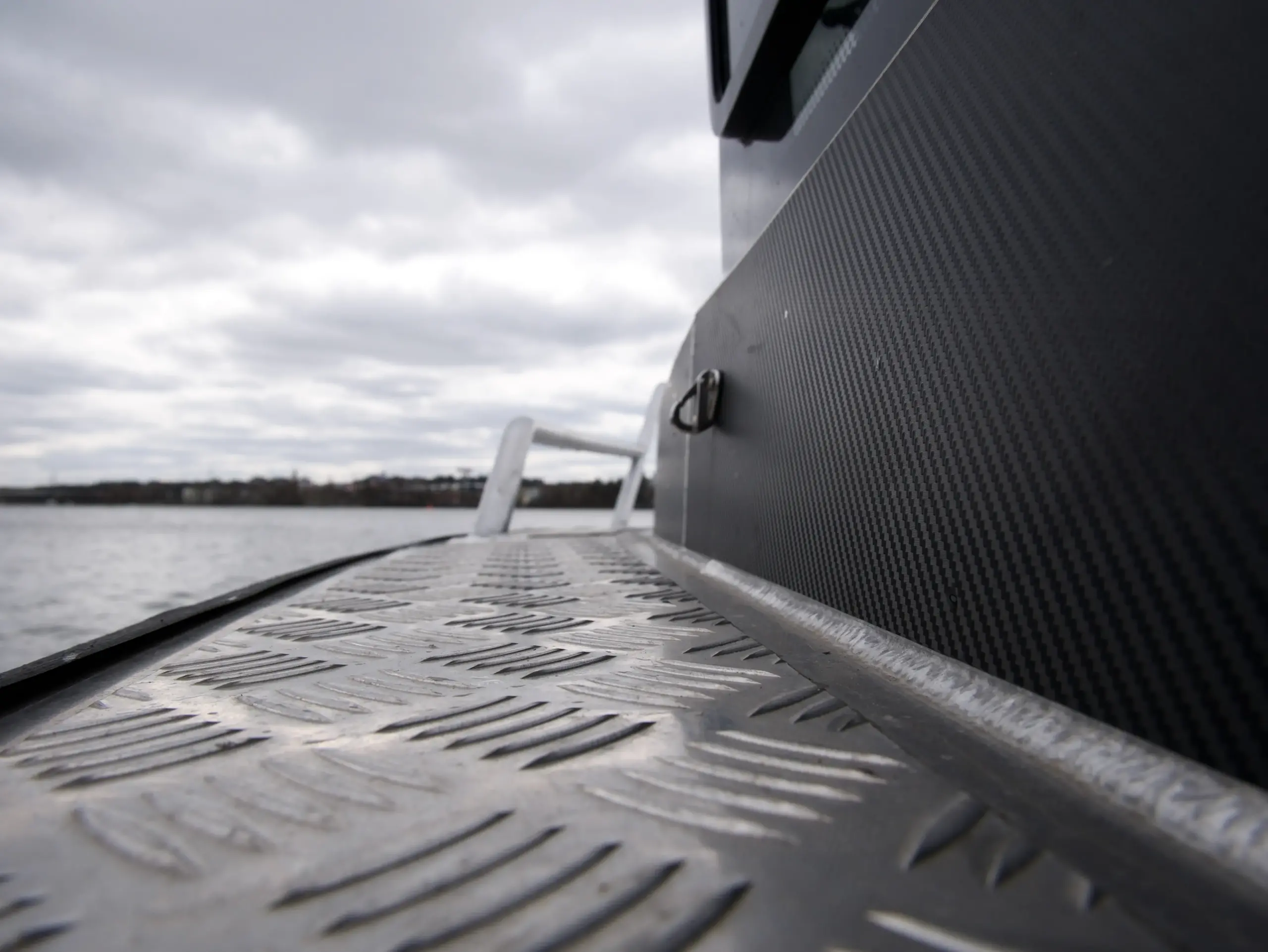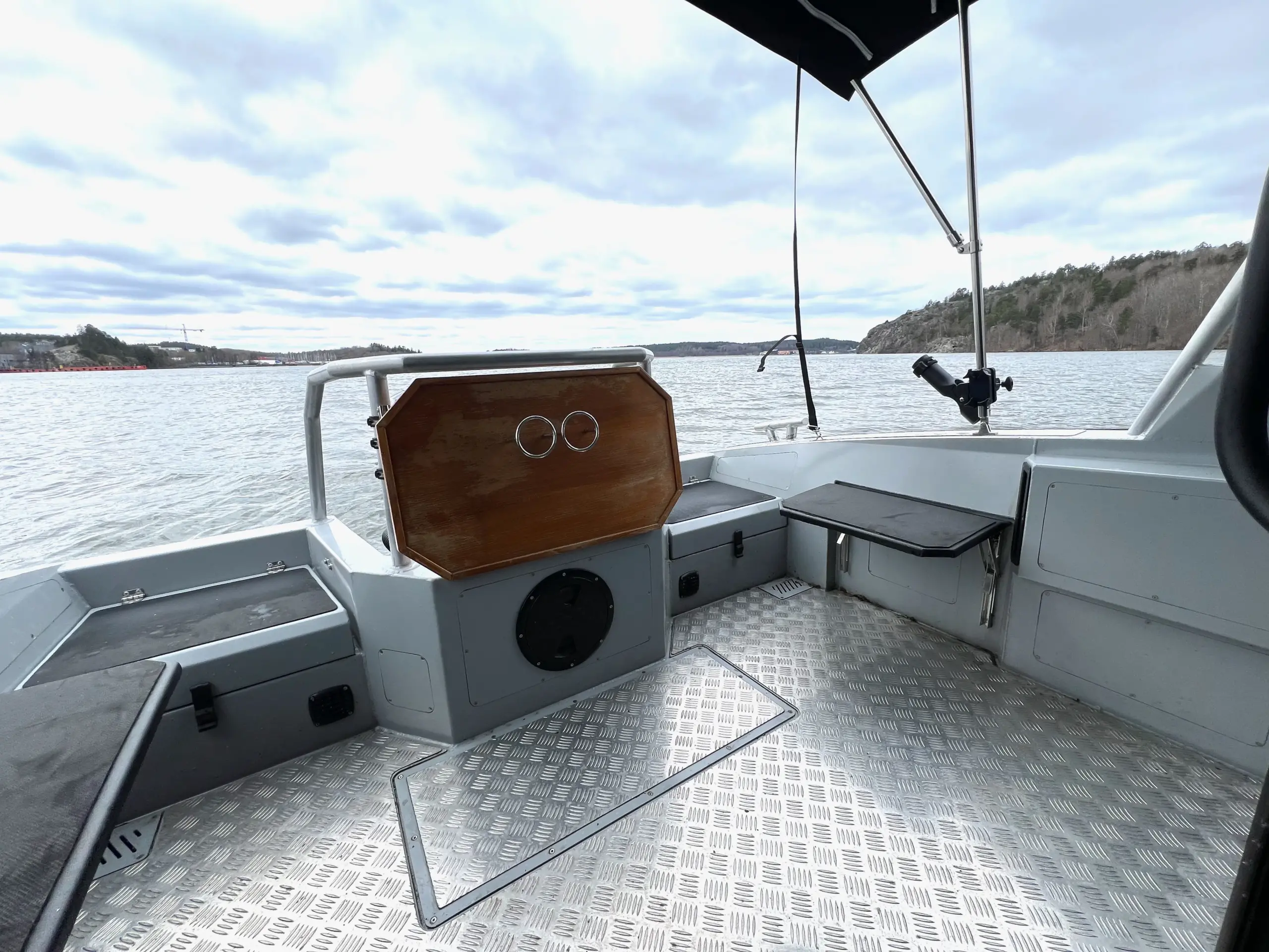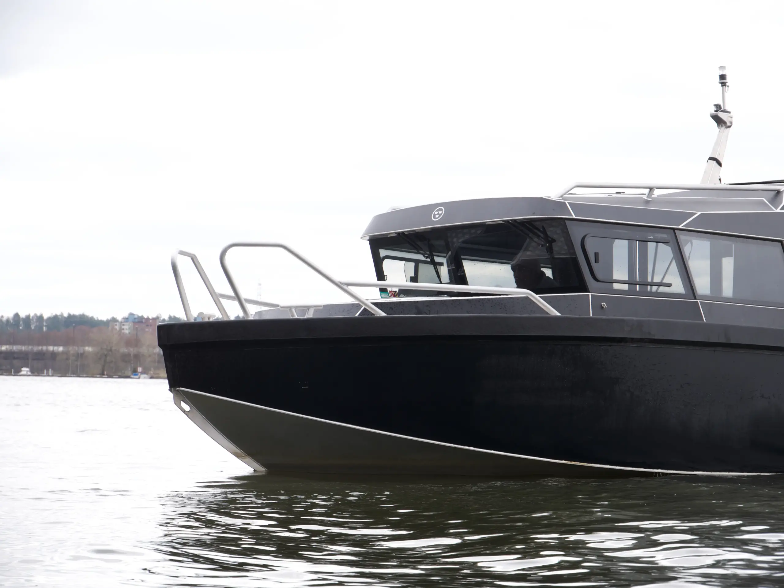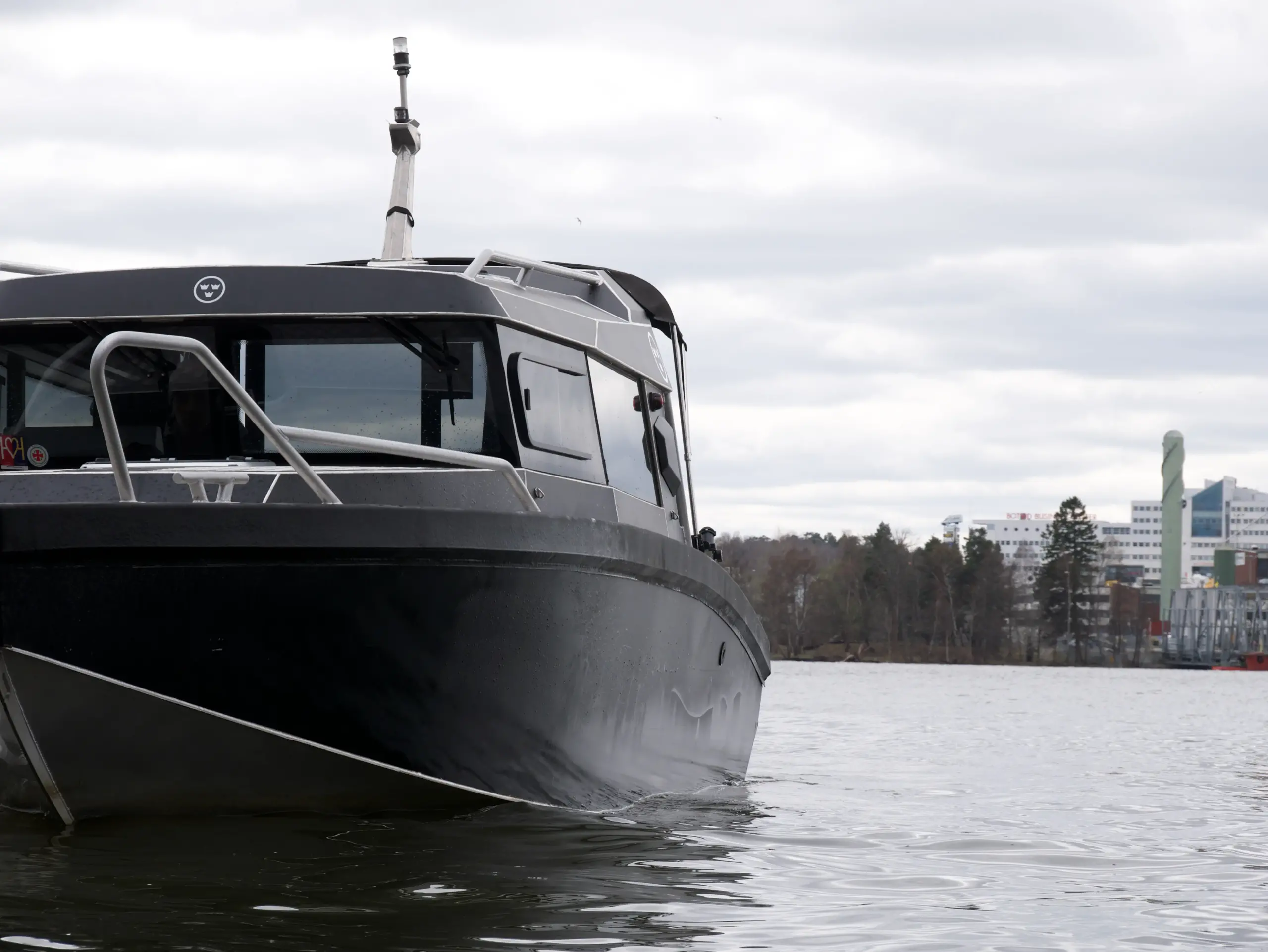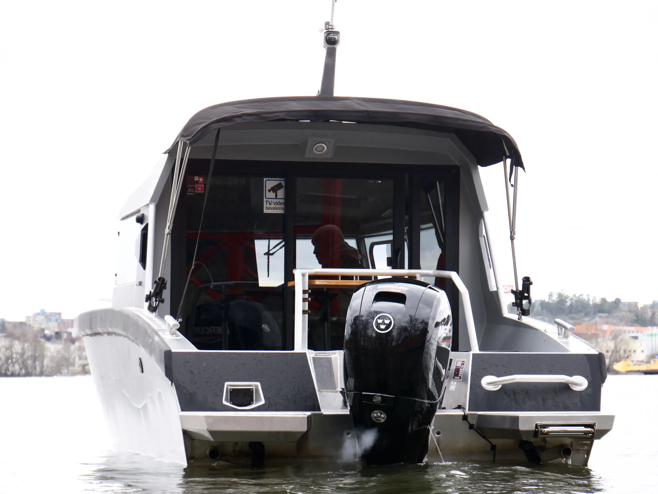 Båten har foilerad överbyggnad vilket ger den ett modern och stilrent utseende.