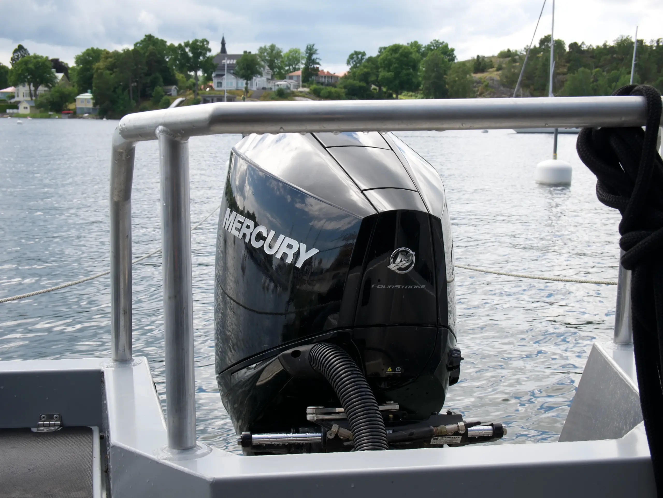 Detta exemplar är utrustat med en Mercury på 225 HK som har gått 242 timmar. Motorn är regelbundet servad hos auktoriserad Mercury-verkstad.