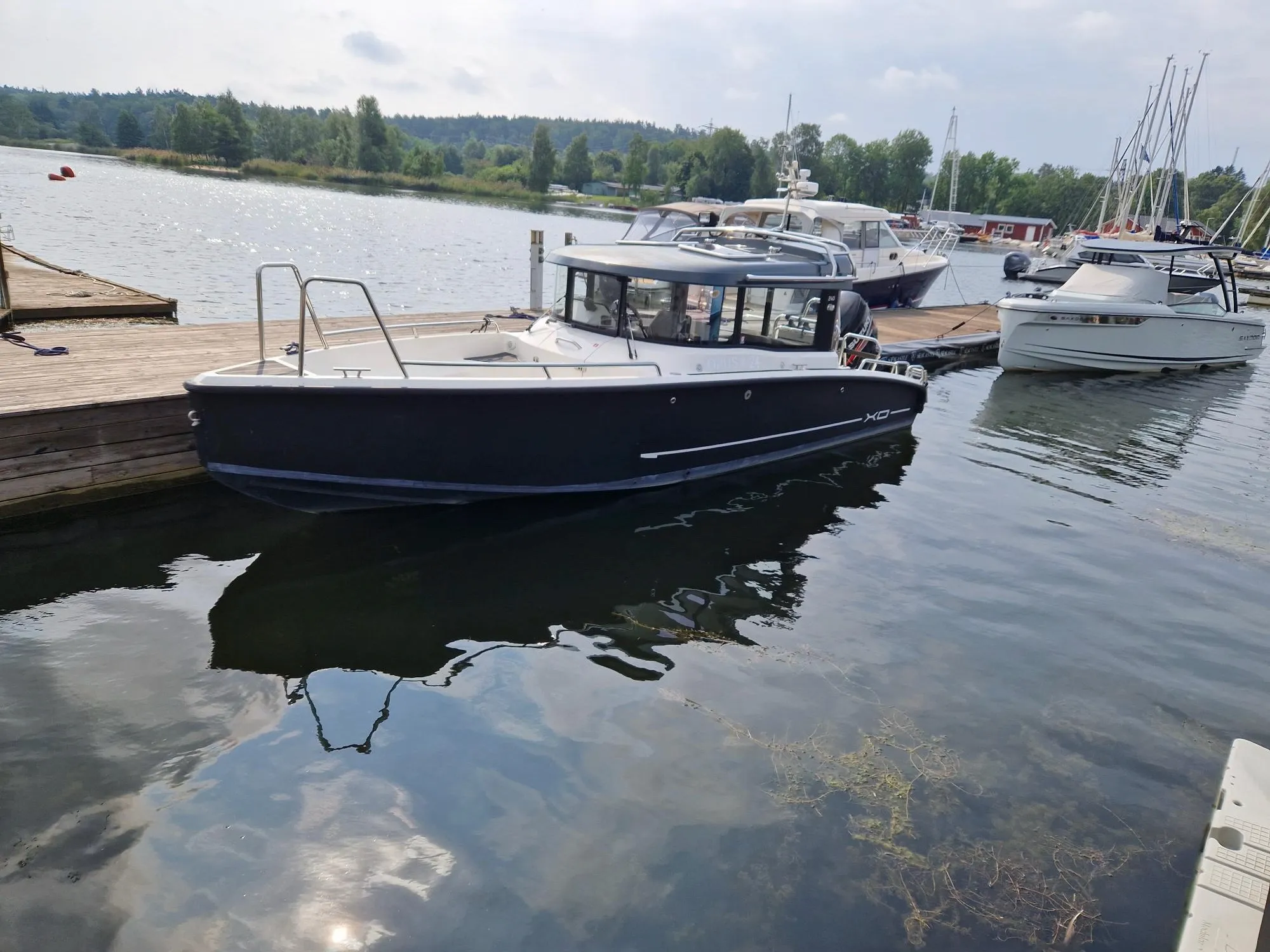 XO 240 Cabin är en båt med tjockt aluminiumskrov och glasfiberöverbyggnad, skapad för att kunna användas året om. Båten har en skrovvinkel på 24 grader vilket ger den väldigt goda sjöegenskaper. I kabinen finns det sittplatser för fem personer och på fördäck samt akterdäck finns det ytterligare sittplatser för den som vill njuta av havsluften.