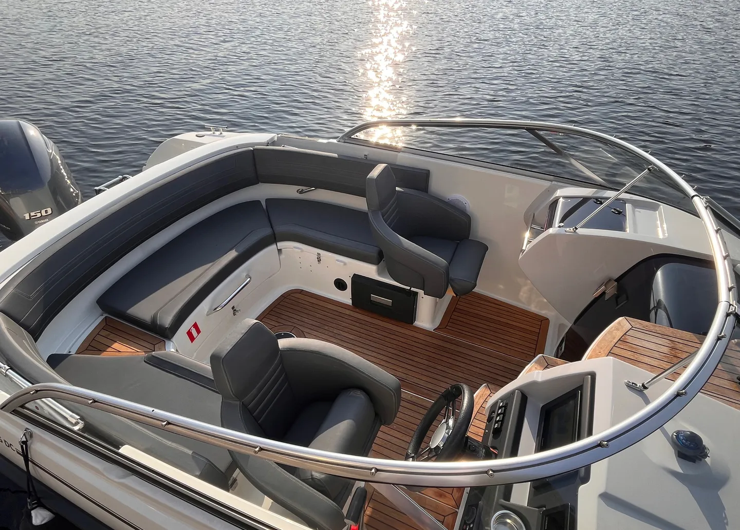 Yamarin 65 DC är en populär modell från Yamarin med en stor sittbrunn. Här kan du båda avnjuta åkturen, en måltid eller solbada på solbädden. Under däck finns det ett komfortabelt sovutrymme för två personer. Båten går snabbt och tryggt i havet tack vare sitt väldesignade skrov och den starka motorn. Som förare har du god sikt runtom båten och tillgång till smidiga finesser som automatiska trimplan och plotter från Garmin.